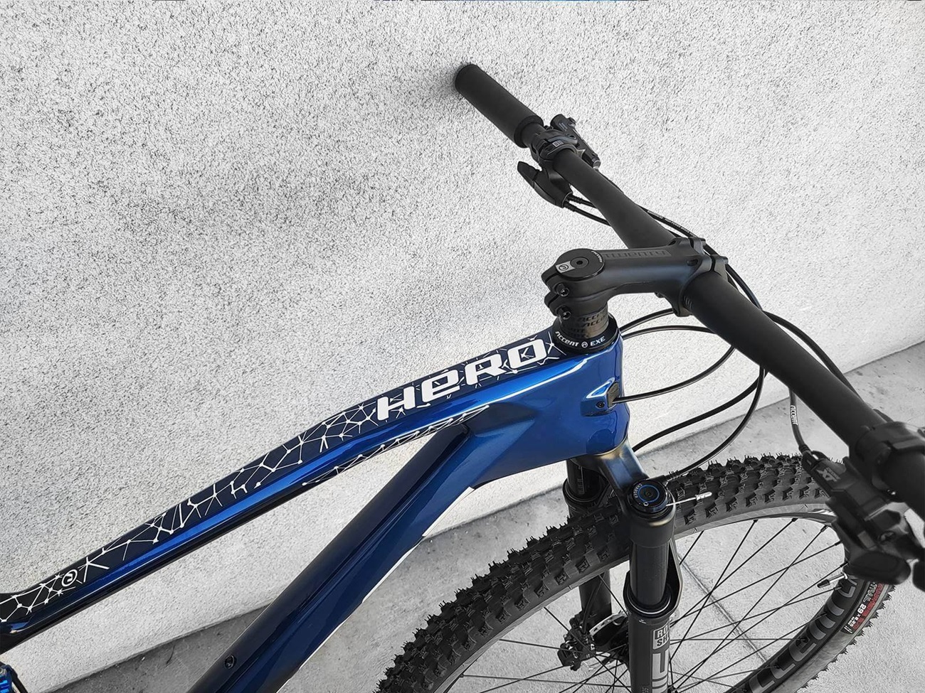 Hero Carbon bike with Shimano XT 1x12 drive, built on a frame in a new color version. RockShox suspension provides a comfortable ride on rough terrain - including the new XC-specific SIDLuxe with Trunnion mount. This model is equipped with Accent EXE Boost v2 wheels and puncture-resistant Vittoria Barzo G2.0 tires, which are ideal for mountain trails.