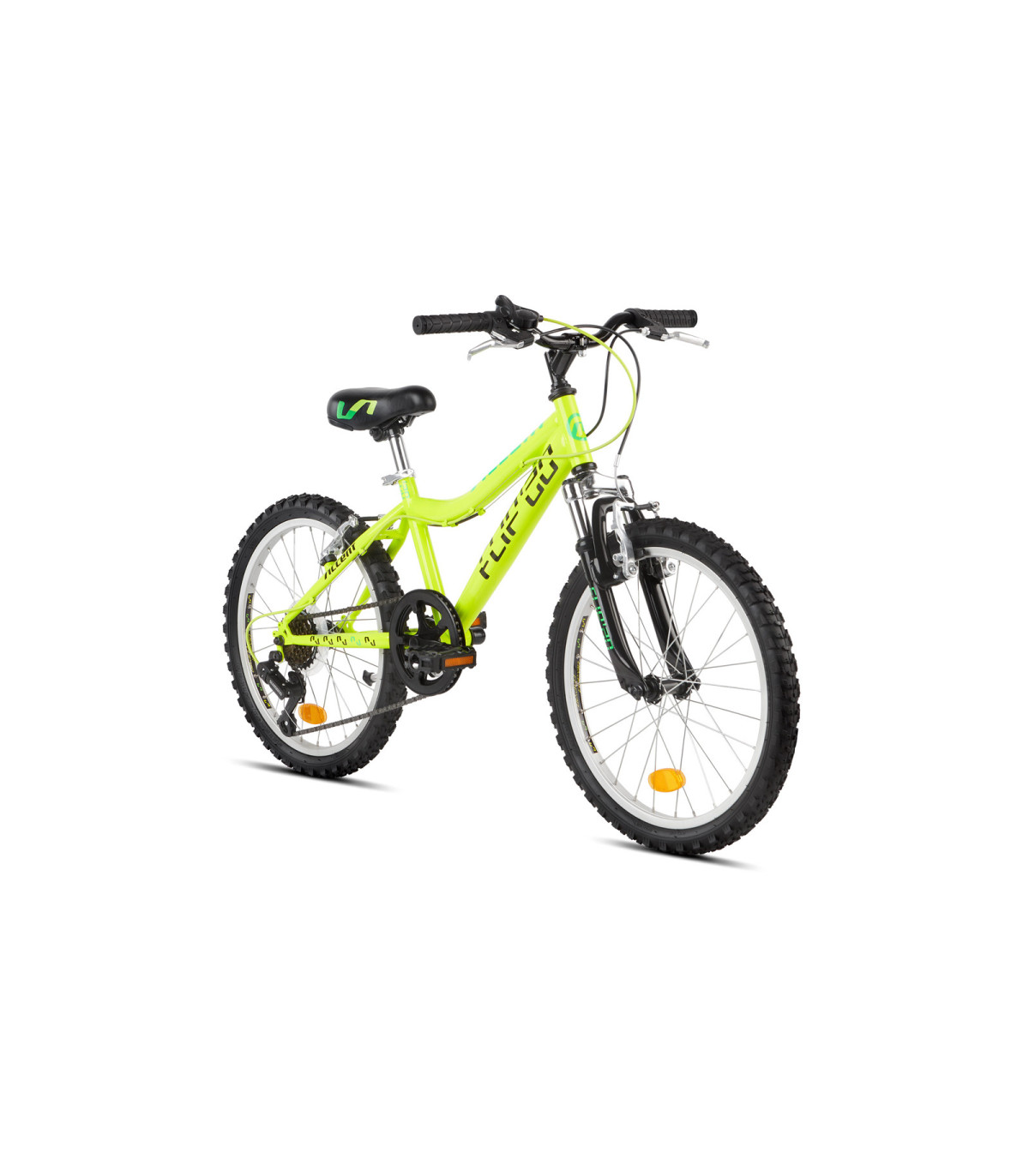The Accent Flip 20" brings freedom and excitement to young riders. Its lowered frame makes mounting easy, while the front suspension fork absorbs bumps and keeps the ride stable on uneven paths. The 6-speed Shimano drivetrain lets kids explore different terrains smoothly, building skills and confidence along the way.