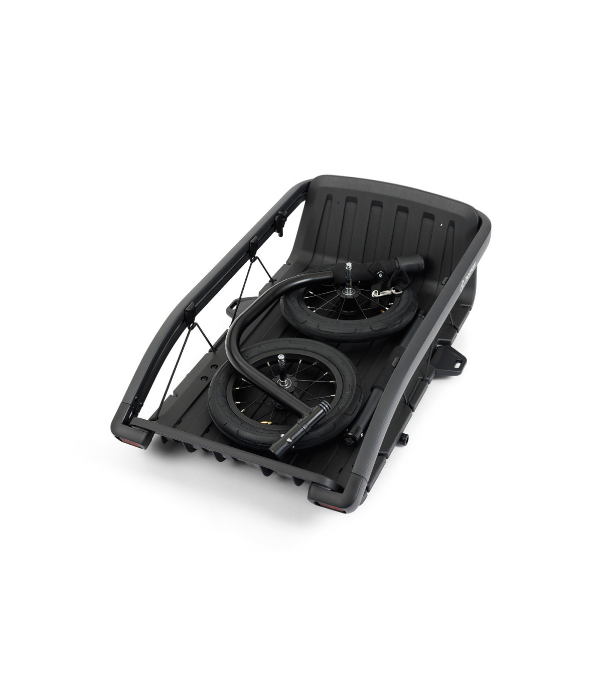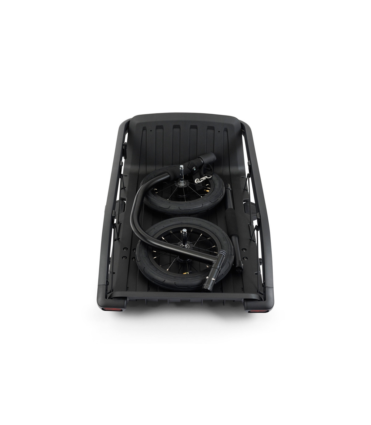 It allows quick switching between cycling and walking mode, giving you full control over how you transport your load. The aluminum frame with universal internal grooves enables different configurations and secure load positioning.