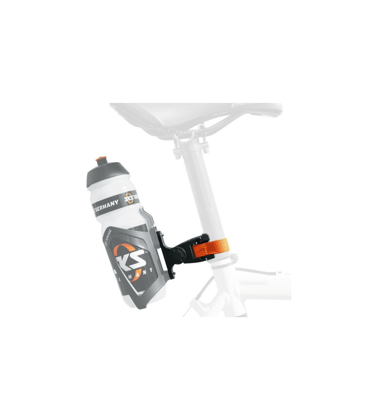 It couldn’t be more flexible! The SKS bike bottle cage adapter can be attached to the bike seat post, the stem or anywhere else on the bike thanks to the adjustable belt on the quick-release fitting.