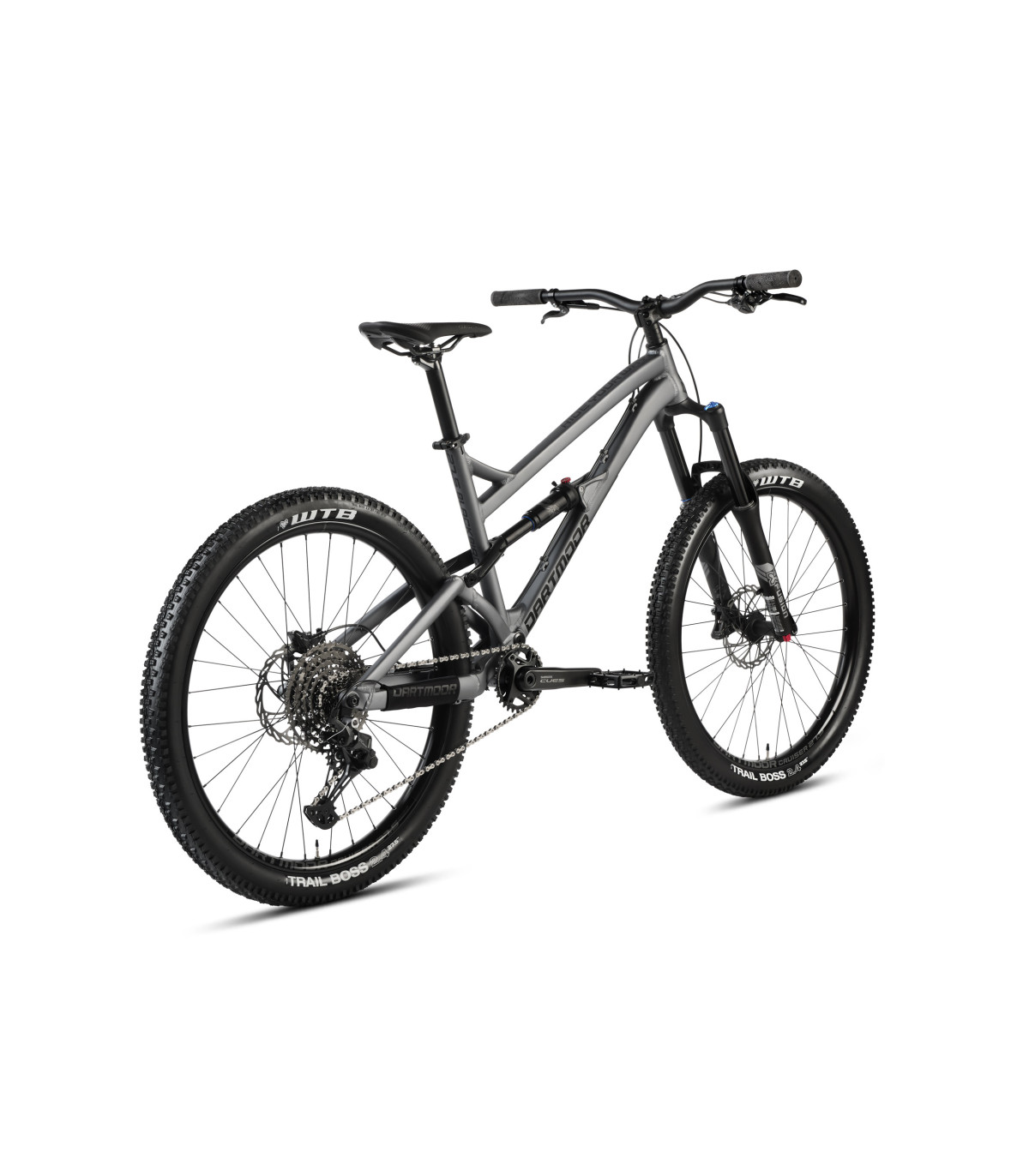 Wide Dartmoor Cruiser 35 mm tubeless-ready rims, WTB Trail Boss 2.4” tyres, and a Tornado 780 mm handlebar with a Viper stem ensure precise handling and trail confidence.