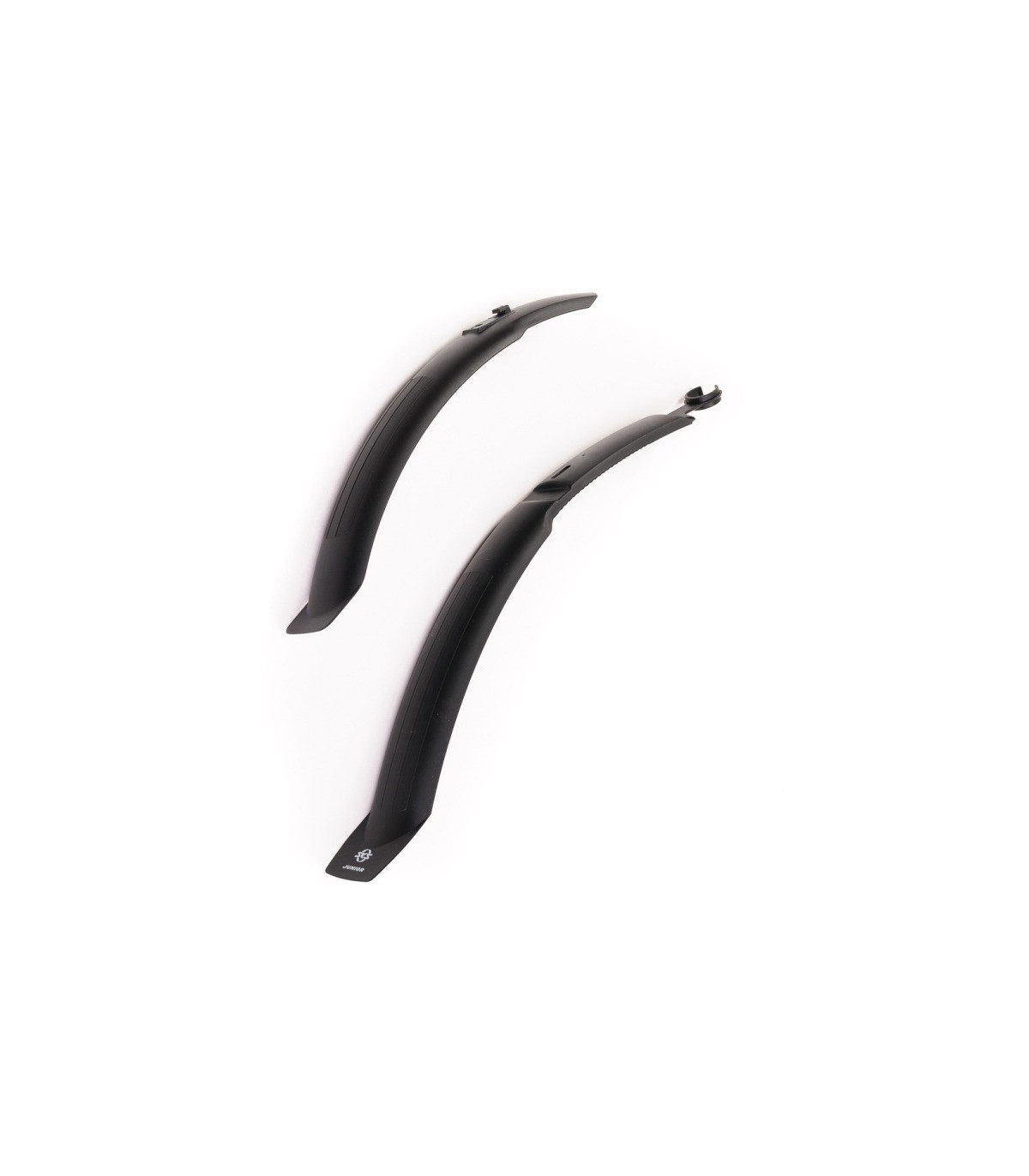 The HIGHTREK JUNIOR clip-on mudguard set made of high-performance impact-resistant plastic is especially suitable for children’s bikes with up to 20 inch tyres and can also be mounted on V-brakes and seat tube diameters of between 28 and 32 mm.