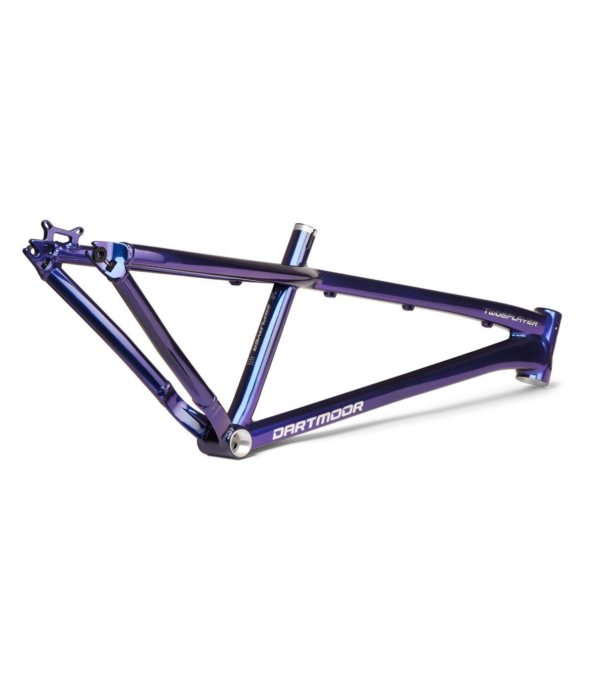 A compact legend of dirt jumping. The Dartmoor Two6Player Pro frame in Cosmic gloss offers maximum agility and control for dirt, pumptrack and slopestyle riding.