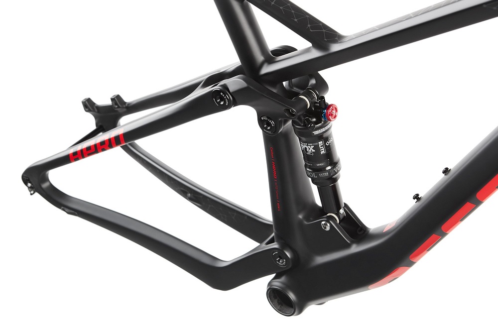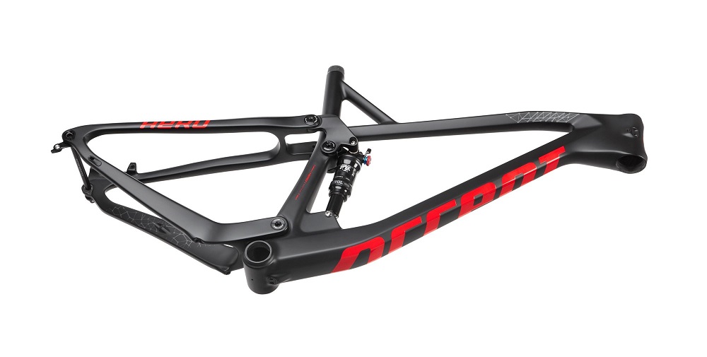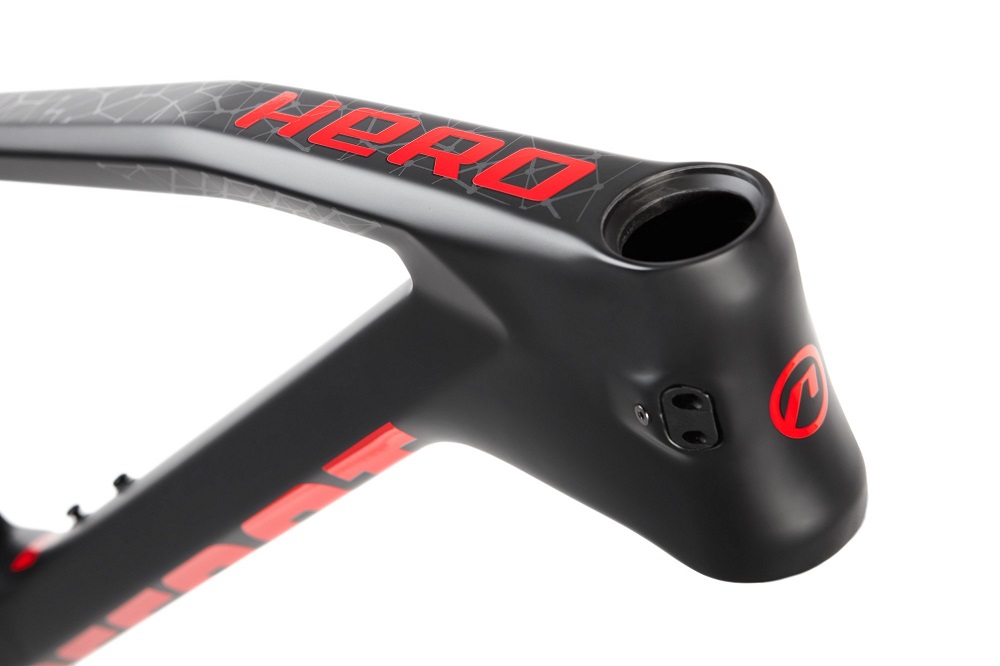 The Accent Hero, the full suspension carbon frame, is ready to tackle even the most demanding MTB marathon and XC courses. Its aggressive geometry is designed not only to deal with any conditions that might be thrown at you, but also to do so as fast as possible. Suitable for 100mm travel forks and 165x40mm rear shocks (Trunnion standard), the standard thru axle (12x148mm) ensures that the frame is as stiff as possible and handles well in rough terrain. To protect your cables from excessive wear while also providing a sleek look, all cables can be routed internally — not only derailleur and brake, but dropper seatpost and rear shock lockout as well.