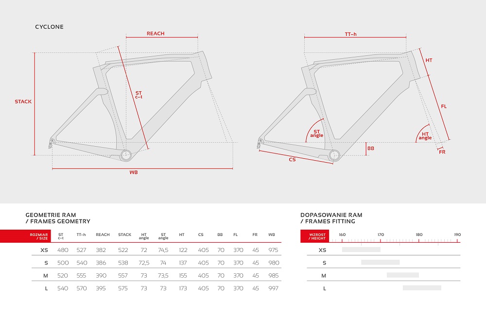 Carbon road frame that’s light, rigid and aero. The frameset includes full-carbon fork with dedicated headset and a seatpost that seamlessly integrates with the frame. Aggressive geometry enables assuming an especially aerodynamic position to give you every possible edge you’ll need in a race. The frame features internal cable routing, as well as a convenient Di2 satellite port on a downtube.