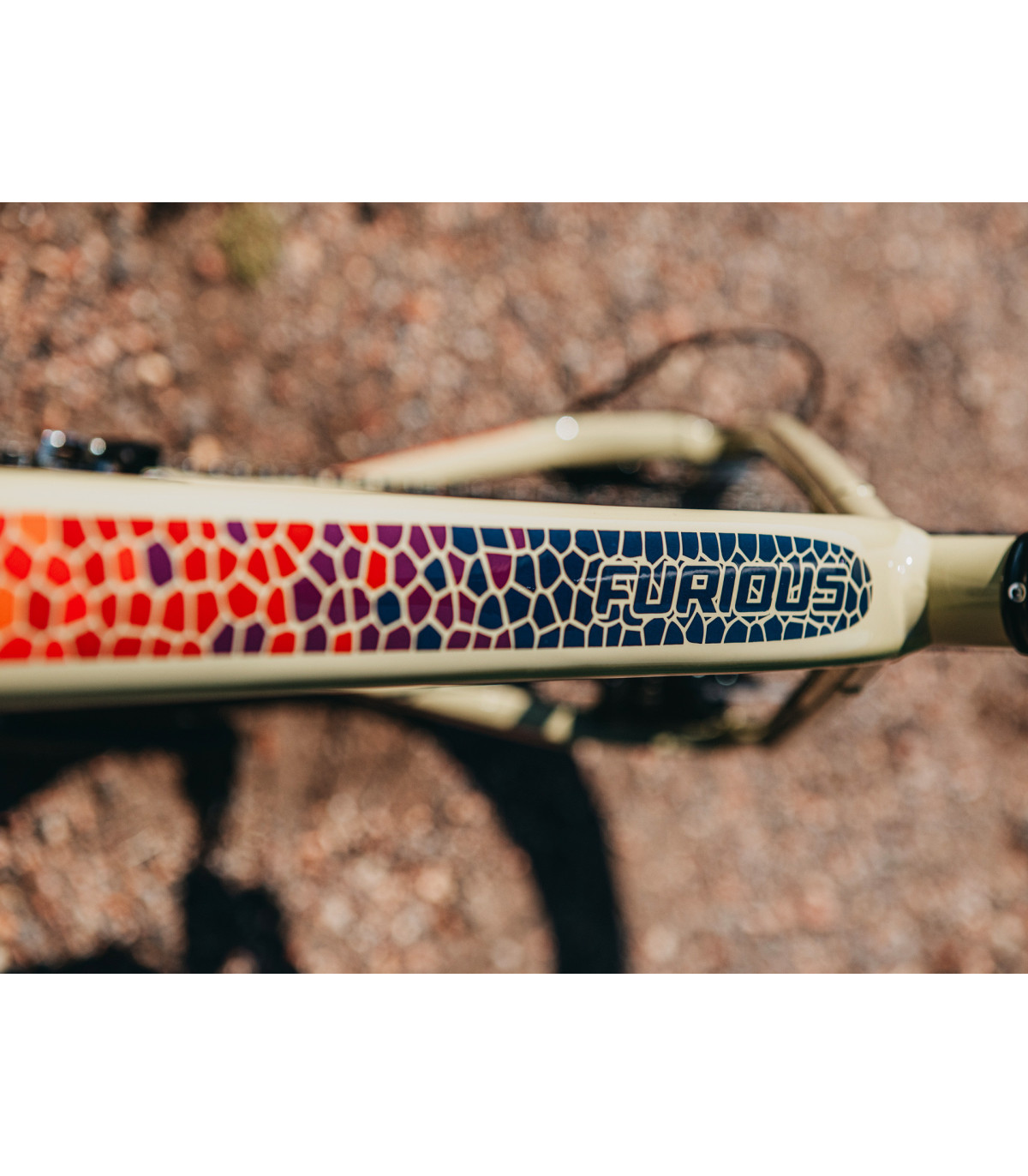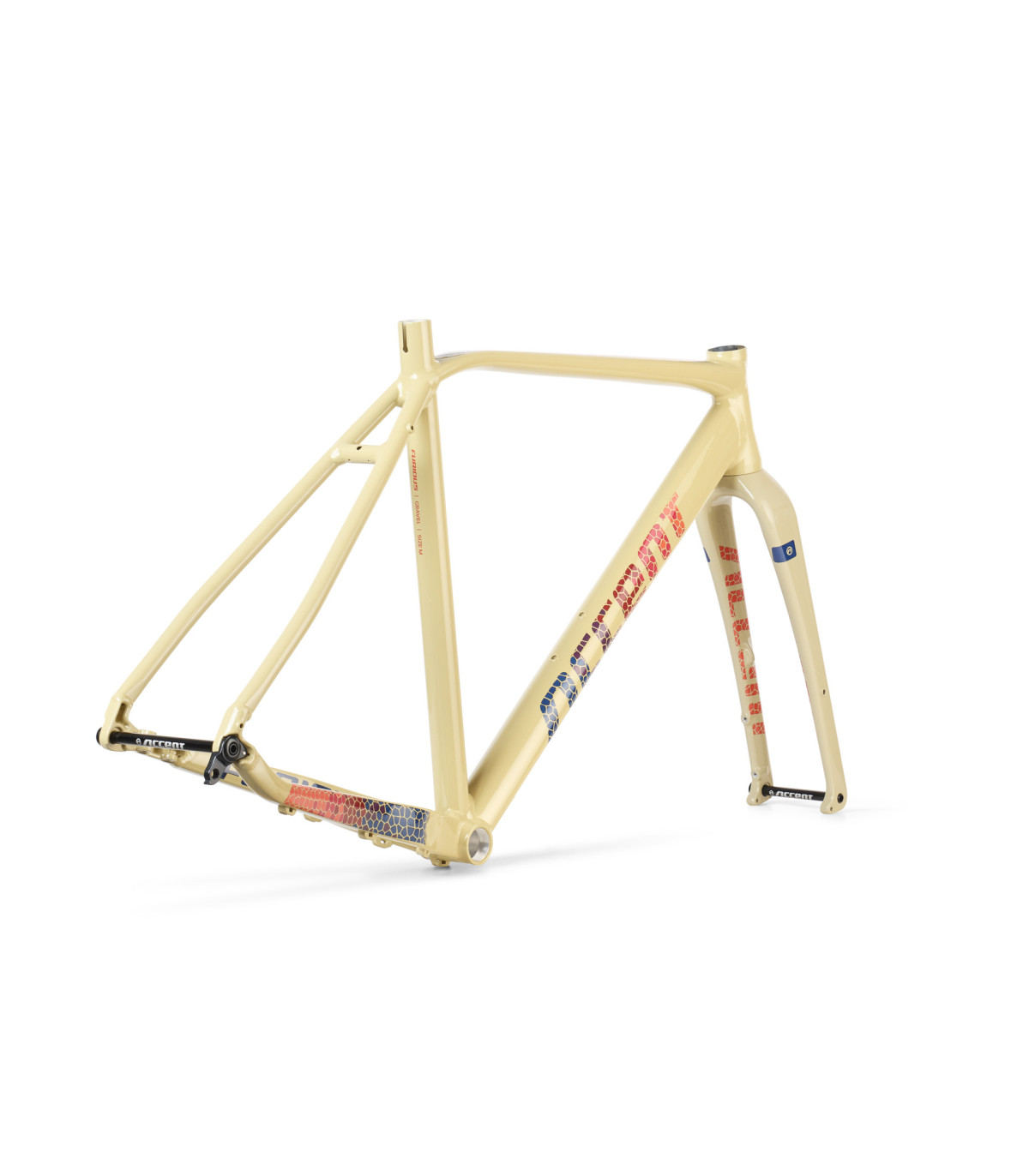 The Accent Furious PRO in desert pave is a lifestyle-oriented gravel frameset offering a smooth, confident feel and inspiring design. With a carbon fork and thru-axles, it's ready for bold, far-reaching adventures.