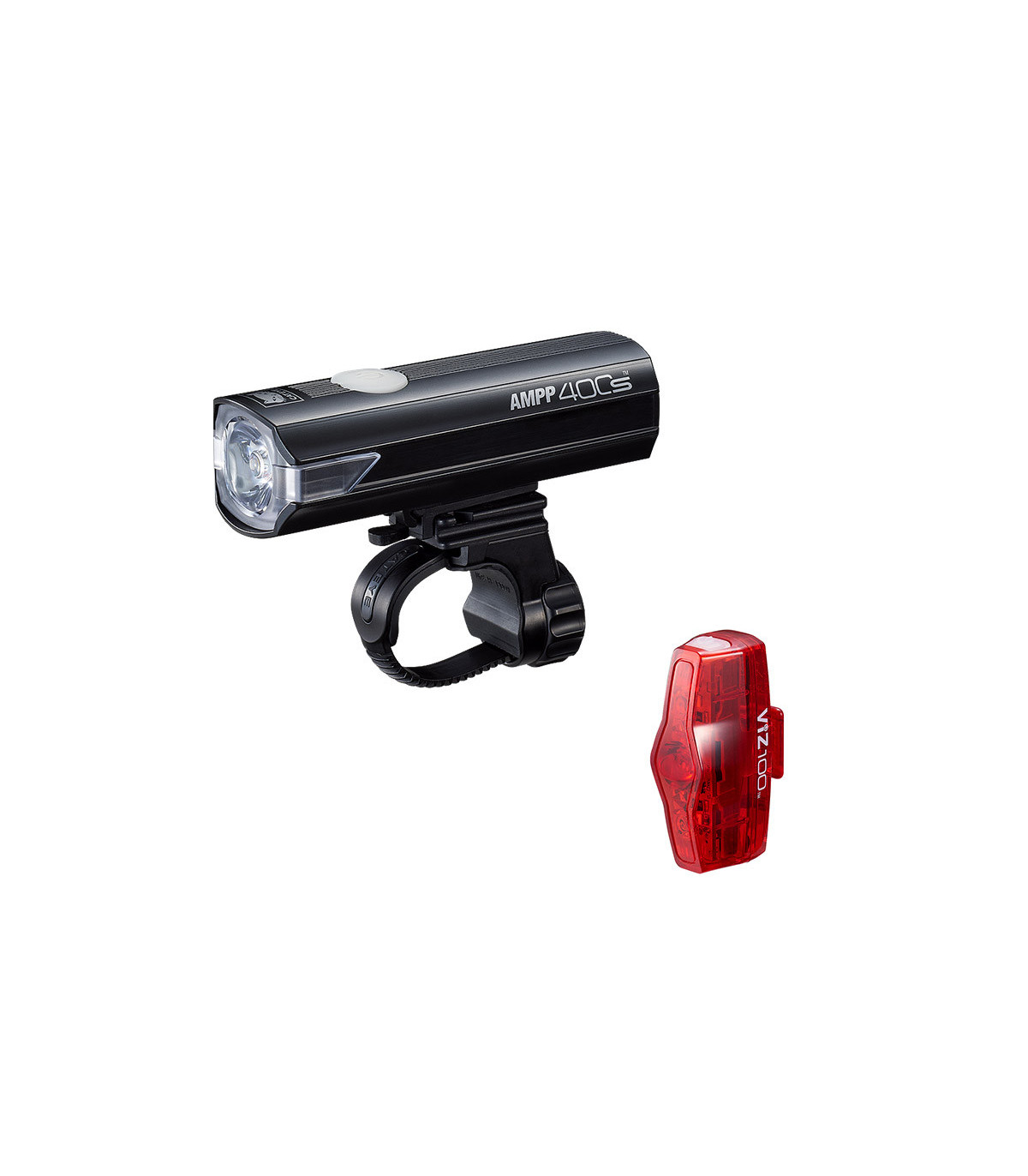 The CatEye AMPP 400S / ViZ100 set delivers powerful front illumination and outstanding rear visibility, making every ride safer — day or night.