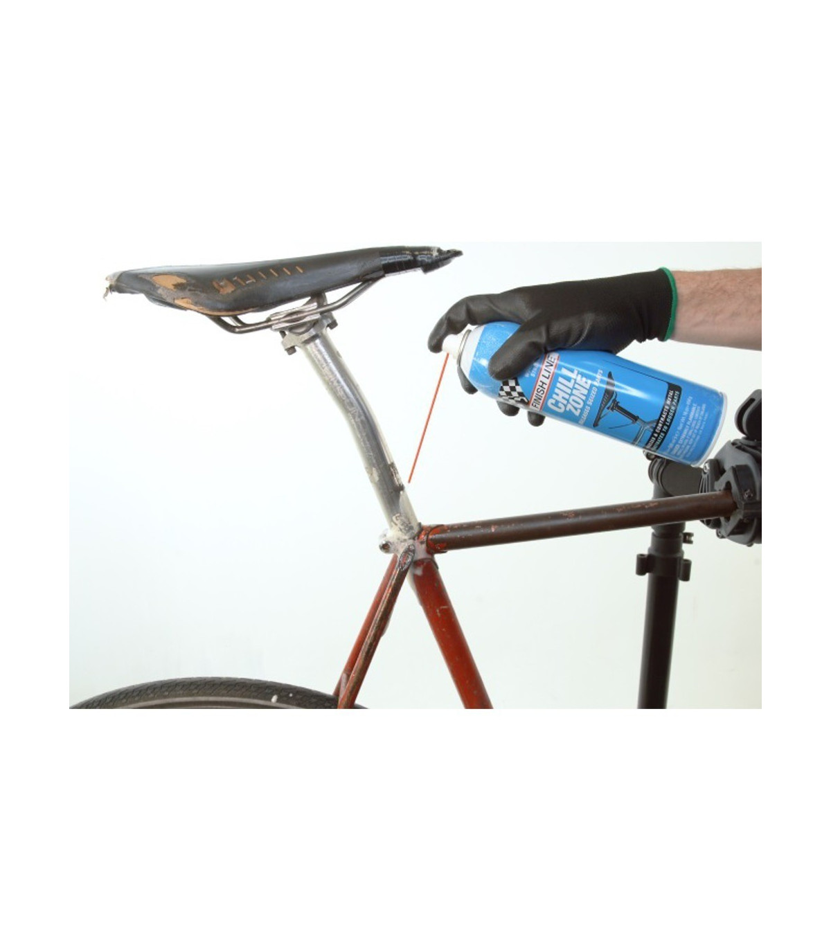 Chill Zone is arguably the industry's most advanced rust-busting penetrating lubricant. It simply works like magic! Before giving up on a frozen crank bolt, a rusted derailleur spring, a seized seat post, or discarding your rusted chain, give Chill Zone™ a shot. Bike parts that normally need to be replaced can be reconditioned to ride another day.
