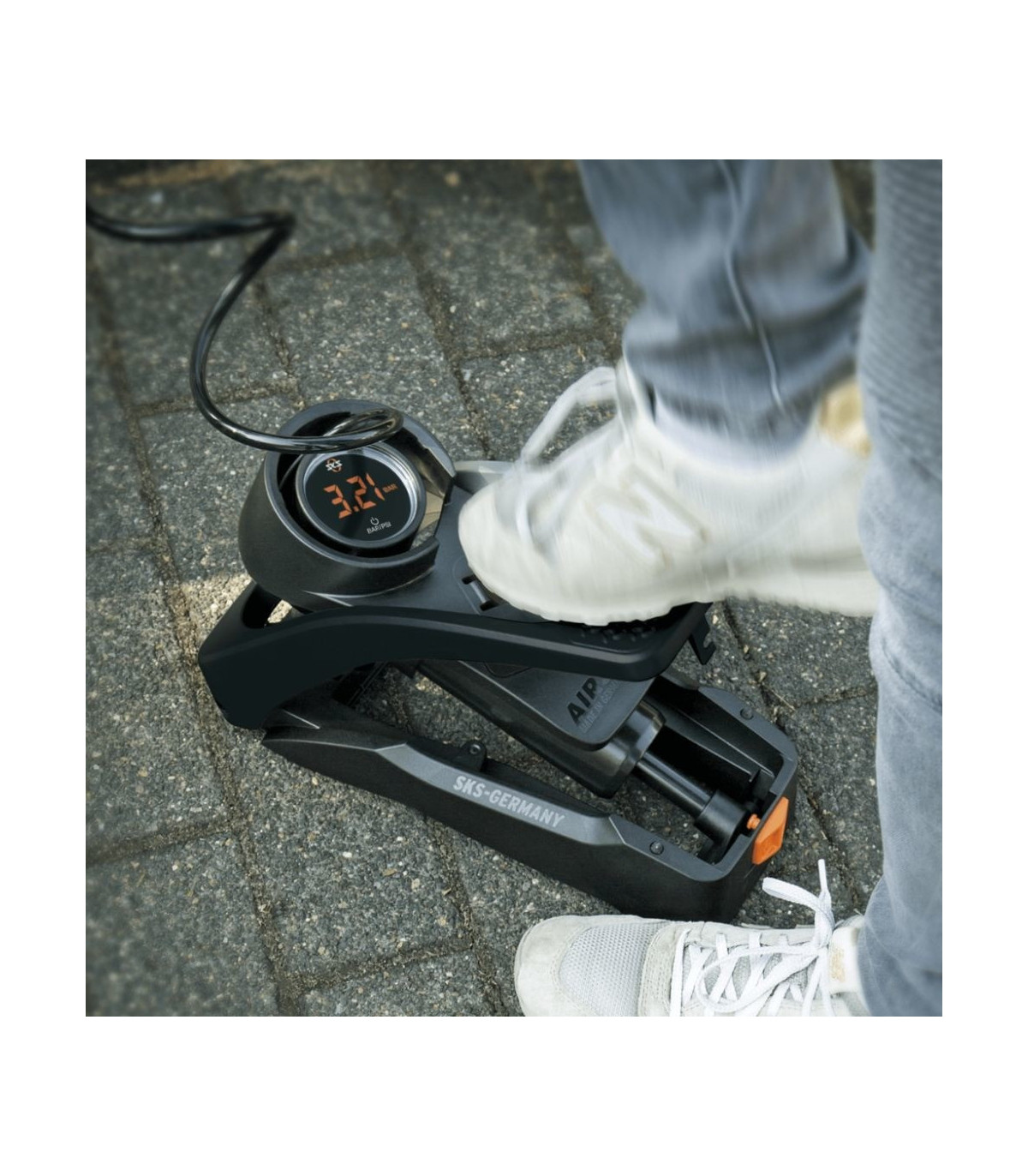 The digital update of the tried and tested SKS AIRSTEP foot pump impresses with a high-quality, precise LED digital pressure gauge.