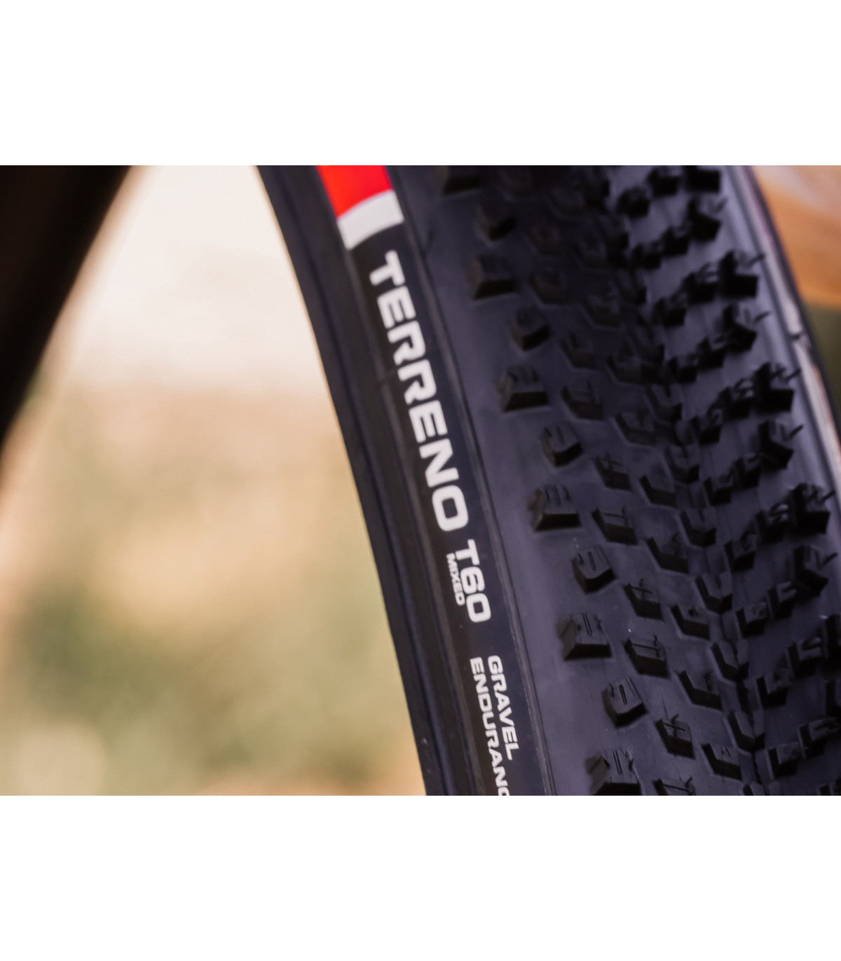 The Vittoria Terreno T60 is a durable gravel tire built for mixed terrain and long-distance riding. Stable, predictable, and ready for changing surfaces in all conditions.