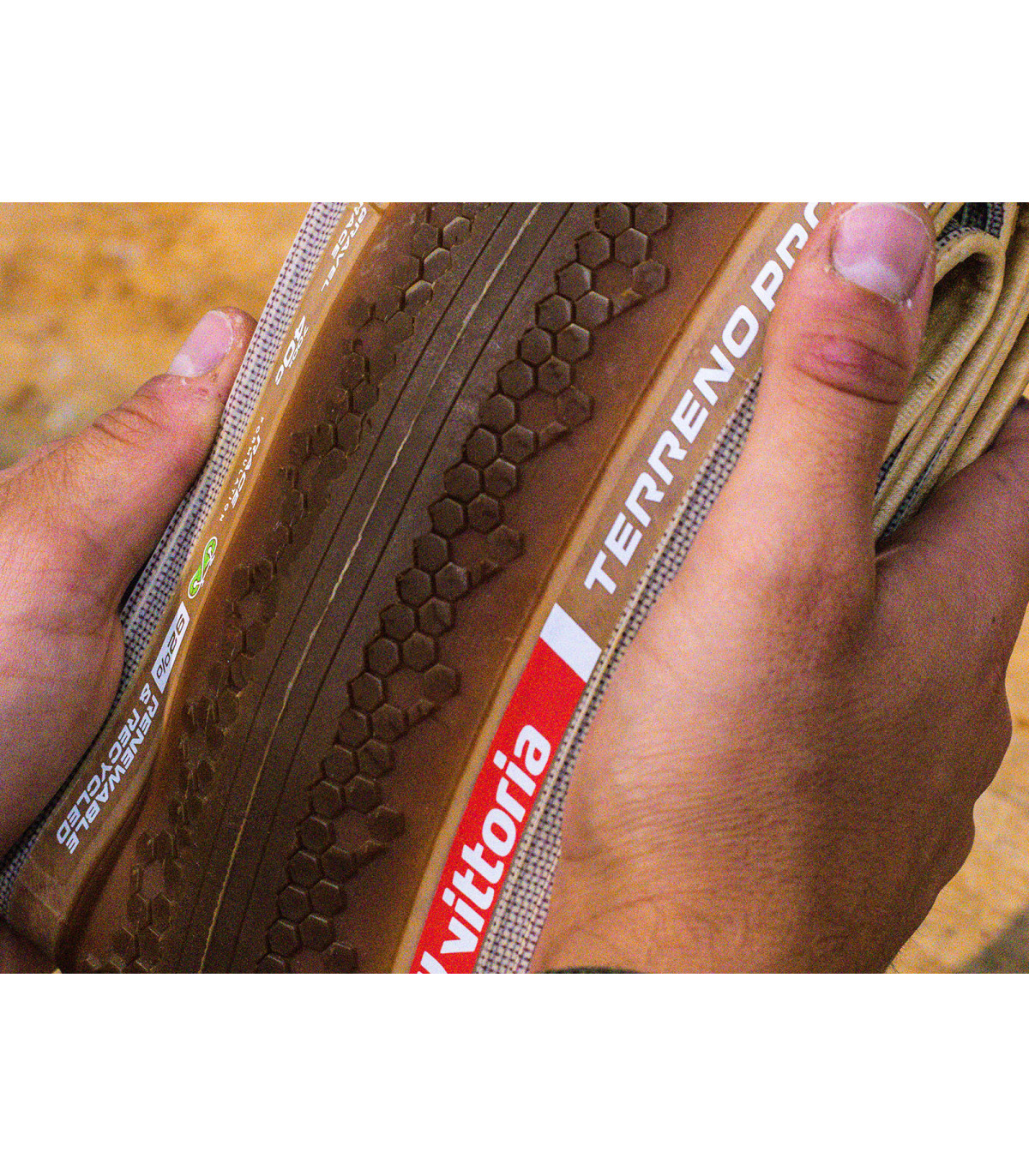 The advanced G2.0 Race Formulation combines FairRubber® certified natural rubber, soybean oil, and silica derived from rice husk ash. This compound enhances grip and rolling efficiency while improving durability and reducing environmental impact. Terreno PRO tires are produced using 92% renewable and recycled materials, proving that sustainability and top-level performance can go hand in hand.