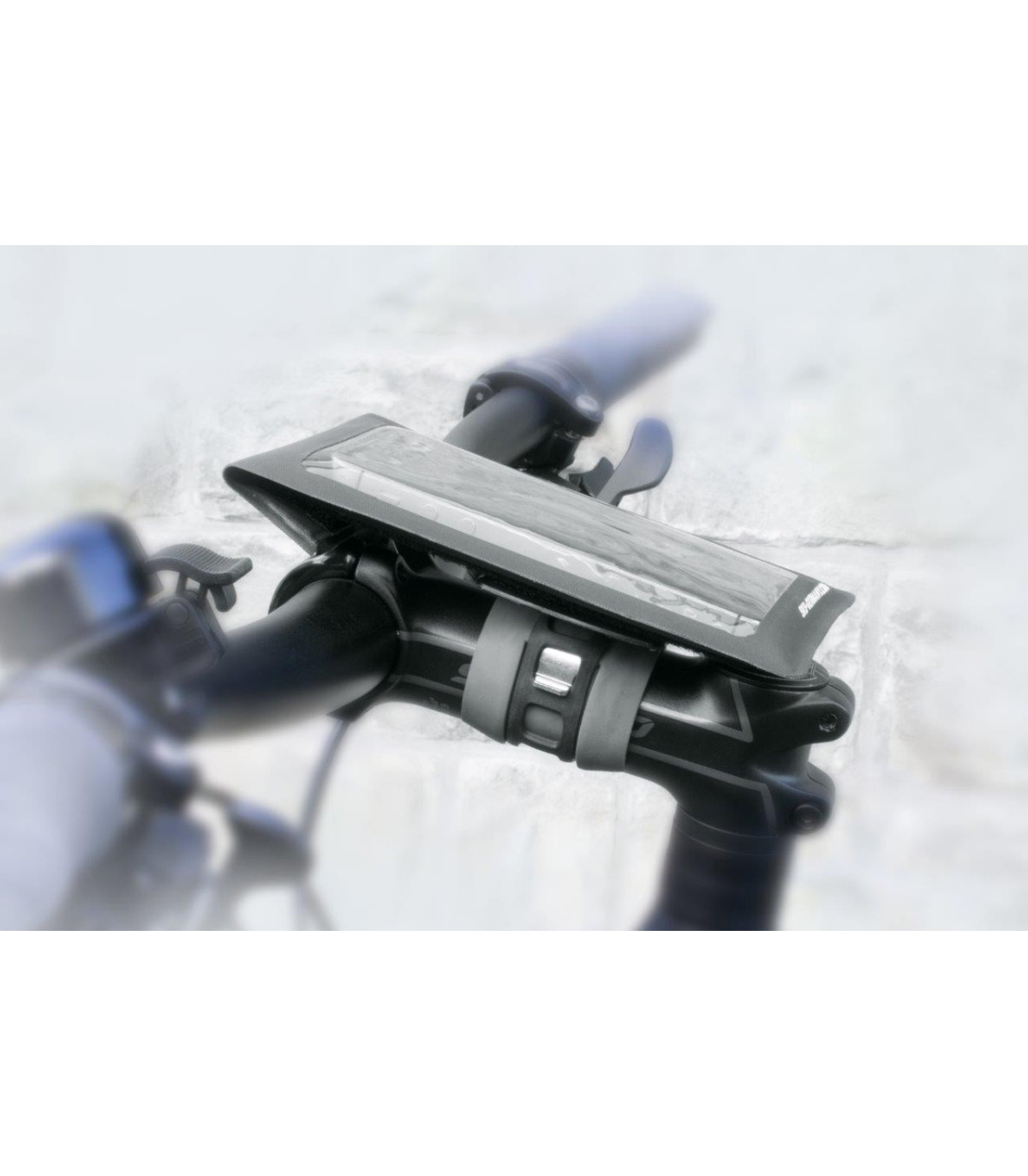 With the SMARTBOY smarthphone holder, the mobile phone can be attached to the handlebars of the bicycle or buggy in a matter of seconds – without any tools whatsoever. The smartphone pouch provided is attached to the mobile phone holder with a strong hook and loop fastener and can be easily removed from the handlebars. This protects the smartphone from moisture and it can be used easily through the transparent film.