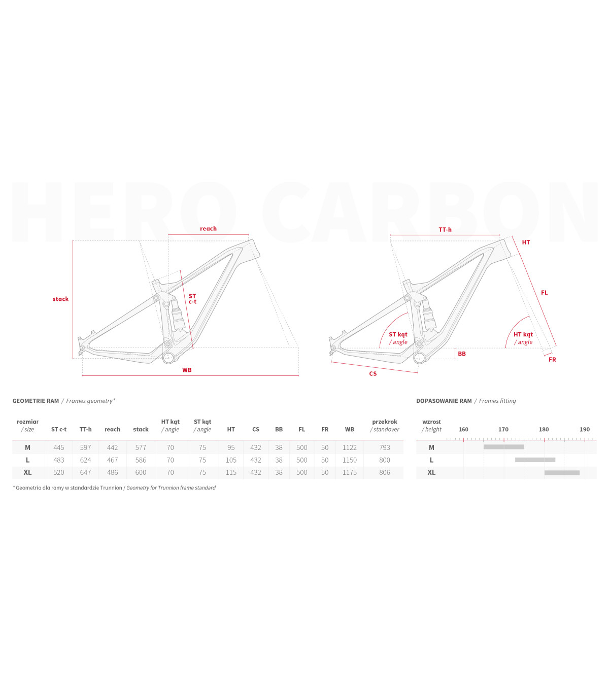 Hero Carbon XTR to flagowy model Accent – wyścigowy full suspension stworzony do ścigania w XC. Karbonowa rama i koła, napęd Shimano XTR i zawieszenie Rock Shox SID Select+ czynią z niego maszynę bez kompromisów.