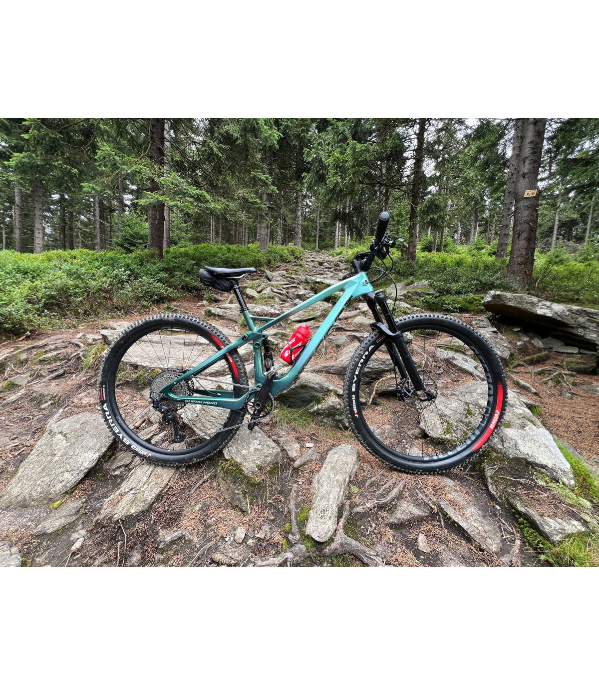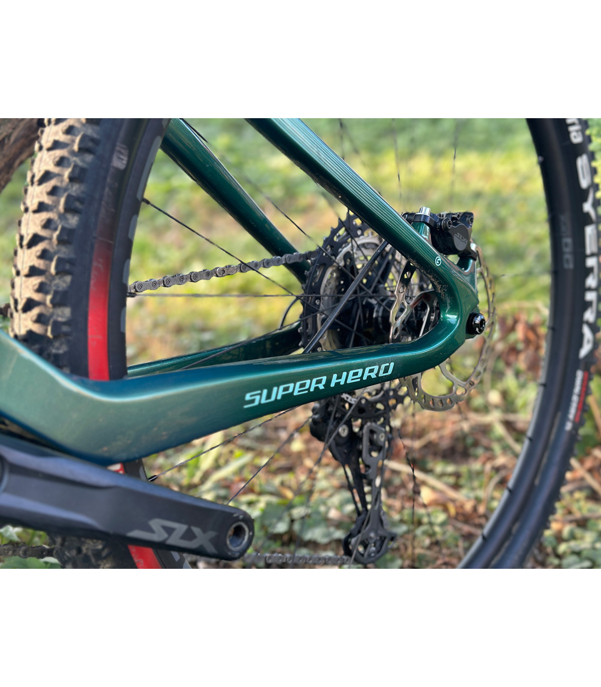 Super Hero Carbon SLX to karbonowy full MTB dla tych, którzy nie szukają kompromisów. Lekki, sztywny i w pełni zawieszony – gotowy na wyścigi XC, maratony i górskie przygody z prawdziwego zdarzenia.