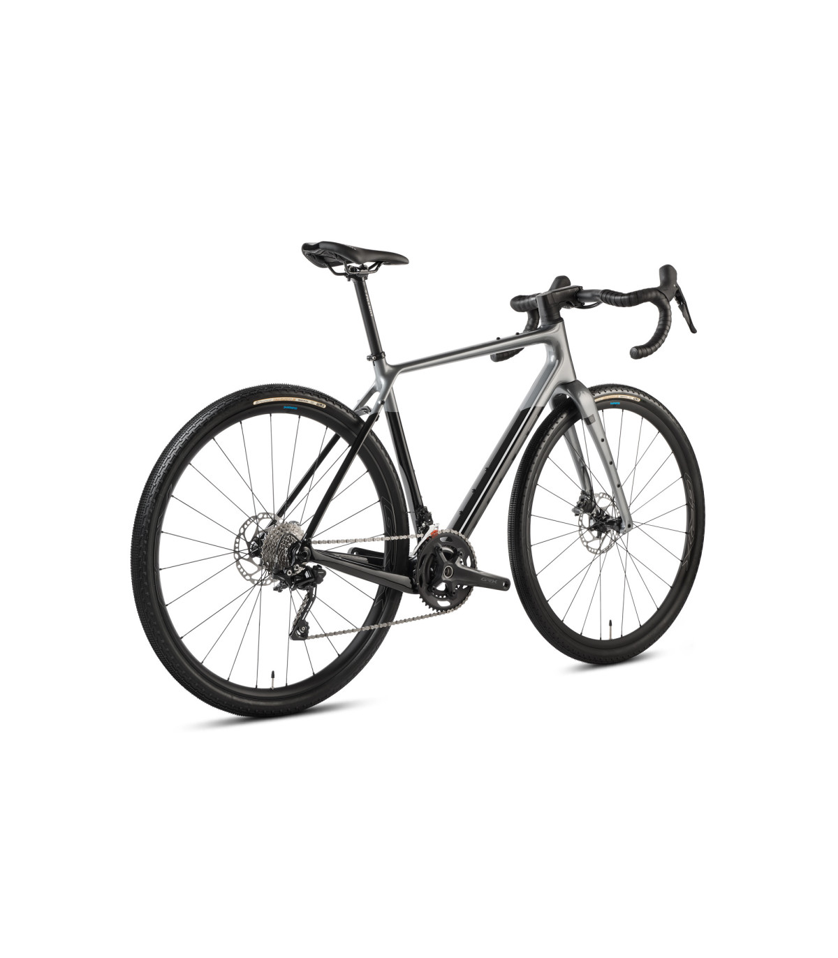 Rower zaprojektowany z myślą o długich trasach – rama i widelec posiadają dodatkowe mocowania pod bagażnik, sakwy i bidony, co czyni go świetnym wyborem dla miłośników bikepackingu. Całość utrzymana w eleganckim, czarno-szarym wykończeniu podkreśla minimalistyczny, sportowy charakter modelu.