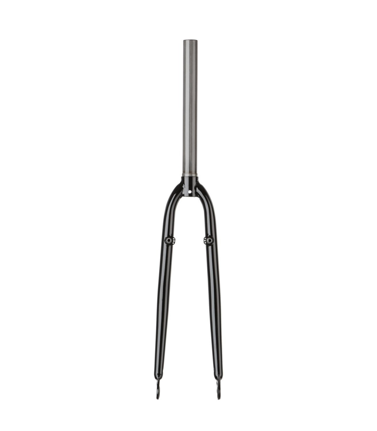 Widelec do rowerów trekkingowych, wykonany z wysokiej jakości stali Hi-Ten. Występuje w dwóch wersjach 1-1/8" bez gwintu, oraz 1" gwintowany. Wyposażony w piwoty oraz otwór montażowy przy hakach.