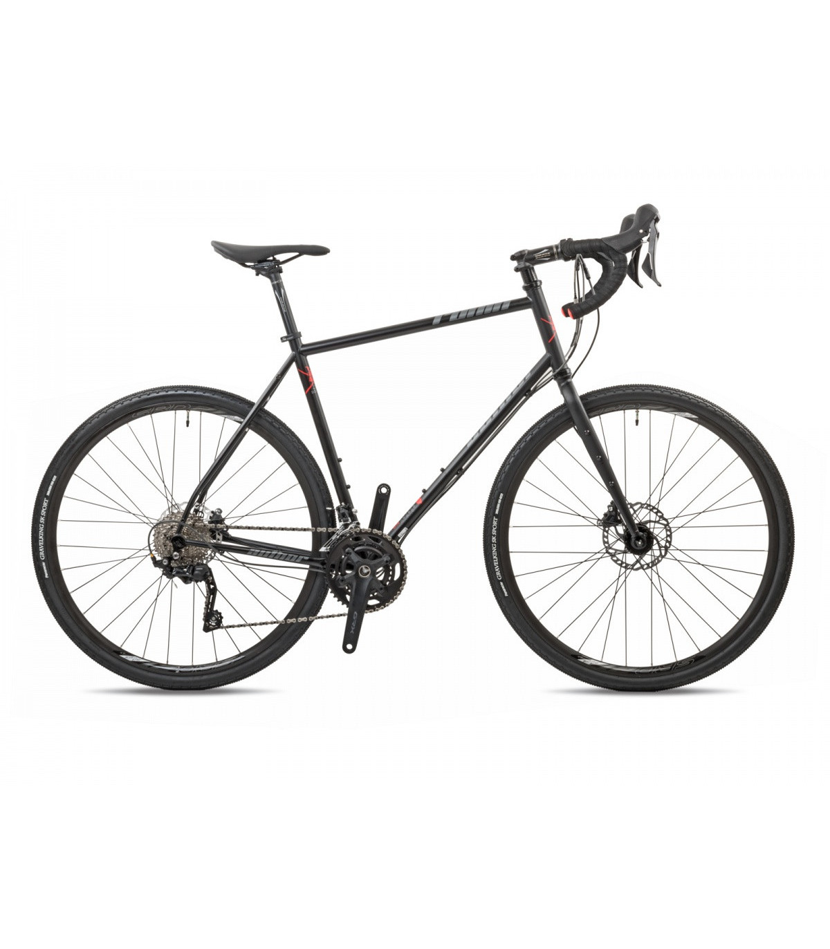 Gravelowy napęd Shimano GRX 400 (2x10) gwarantuje niezawodne działanie zarówno na asfaltowych podjazdach, jak i w lekkim terenie. Hydrauliczne hamulce tarczowe Shimano GRX 400 dają pełną kontrolę w każdych warunkach pogodowych. Obręcze JALCO SRD 21 i opony Panaracer Gravel King SK Sport 700×38C dbają o przyczepność i komfort na długich trasach.