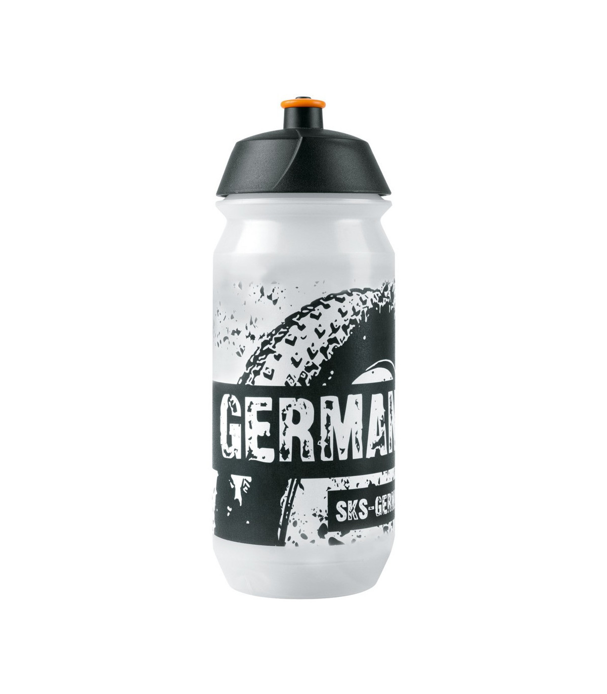 Bidon rowerowy zaprojektowany przez renomowaną niemiecką firmę SKS. Pasuje do większości produkowanych koszyków na bidon. Bidon jest wykonany z nietoksycznego tworzywa, które jest w pełni bezpieczne dla zdrowia. Posiada bardzo ergonomiczny kształt, który sprawia, że korzystanie z niego jest wyjątkowo wygodne. Bidon można łatwo napełnić i wyczyścić przez jego duży otwór. Specjalny zawór push-pull zapewnia odpowiednią szczelność.