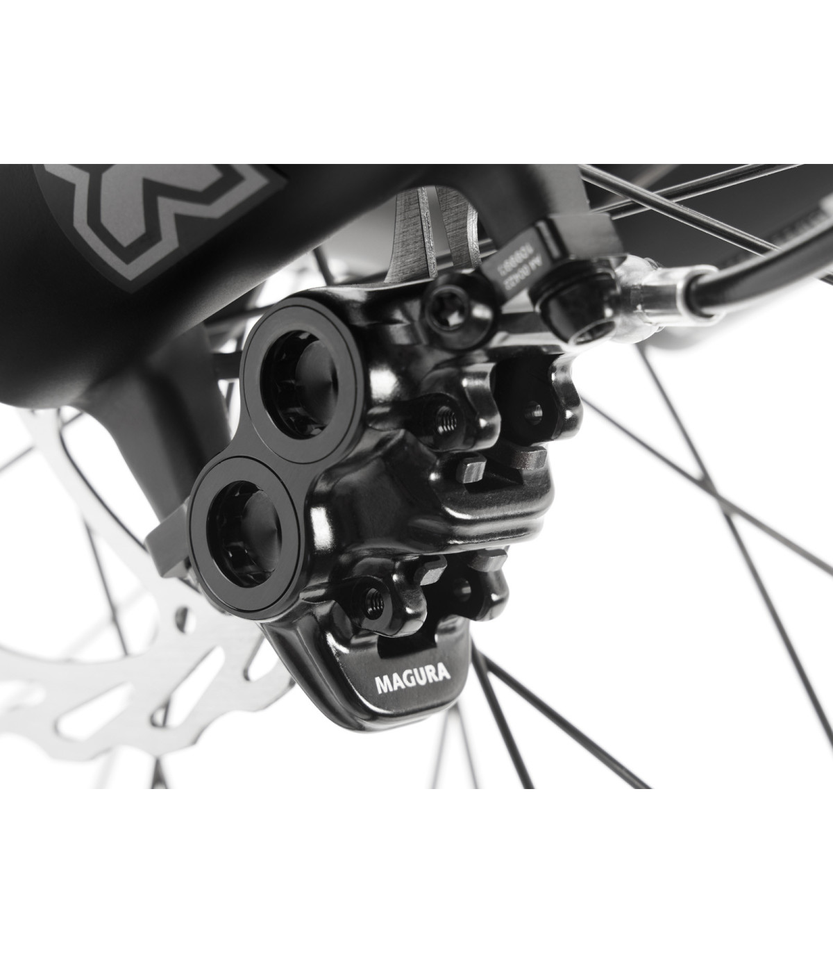 - Mocne hamulce Magura MT5 z 4-tłokowym zaciskiem i tarczą hamulcową 203mm z przodu i 180mm z tyłu