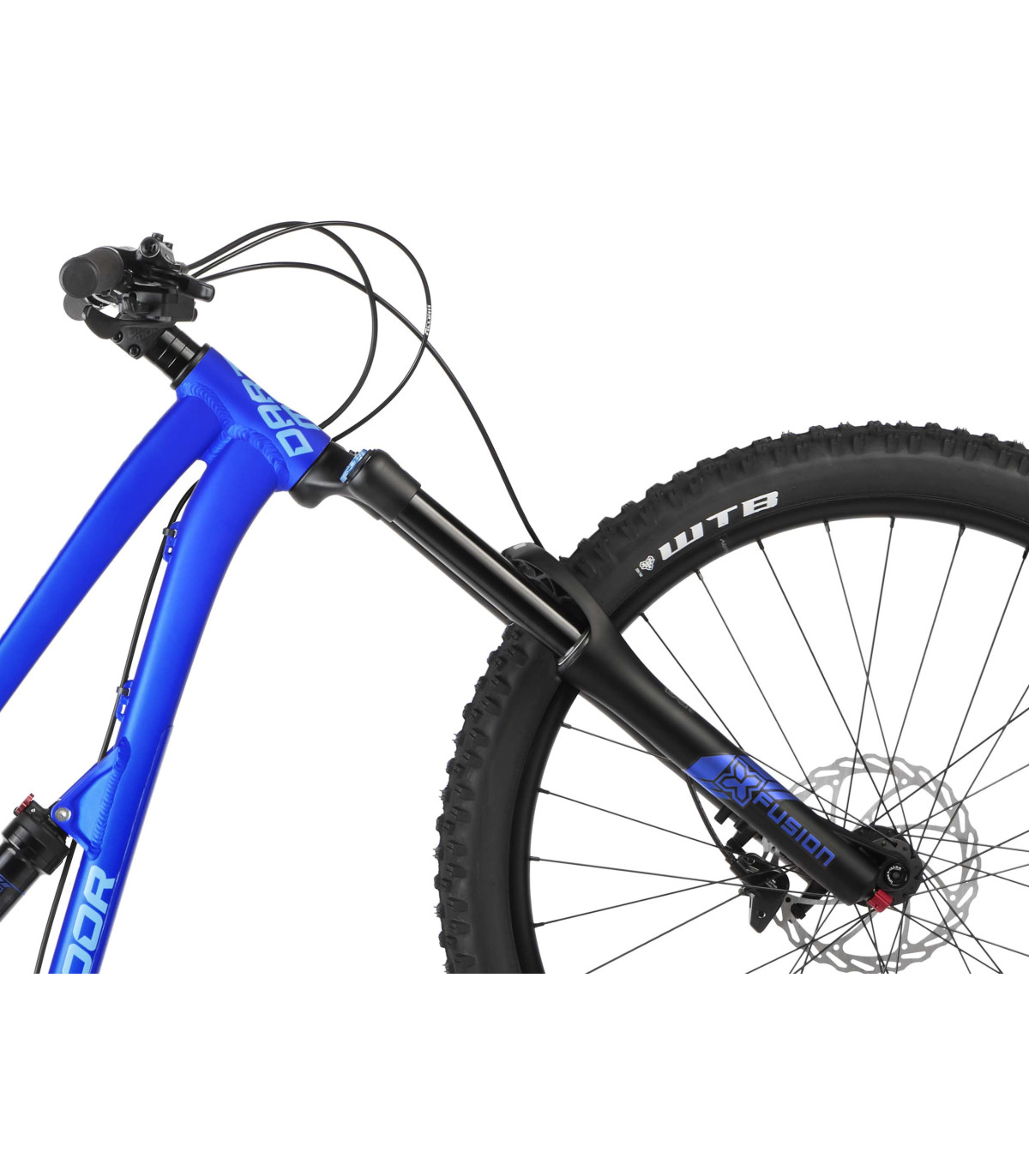 Przystosowane do systemu bezdętkowego obręcze Cruiser o szerokości 35 mm i opony WTB Trail Boss zapewniają przyczepność i wytrzymałość w kamienistym terenie. Kokpit Dartmoor z mostkiem Viper i kierownicą Tornado Hi 780 mm daje precyzyjne prowadzenie i pewność w zakrętach.