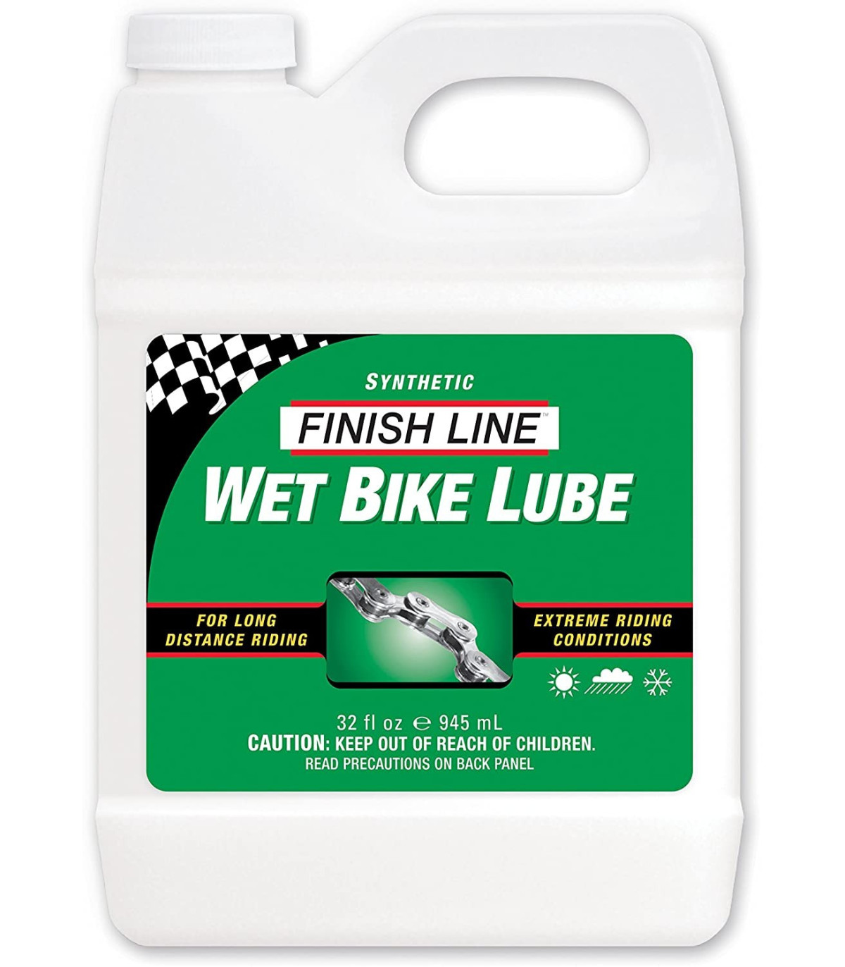 Zawiera hydrofobowe polimery, dzięki czemu Finish Line jest najdłuższym i najbardziej wodoodpornym środkiem smarnym.