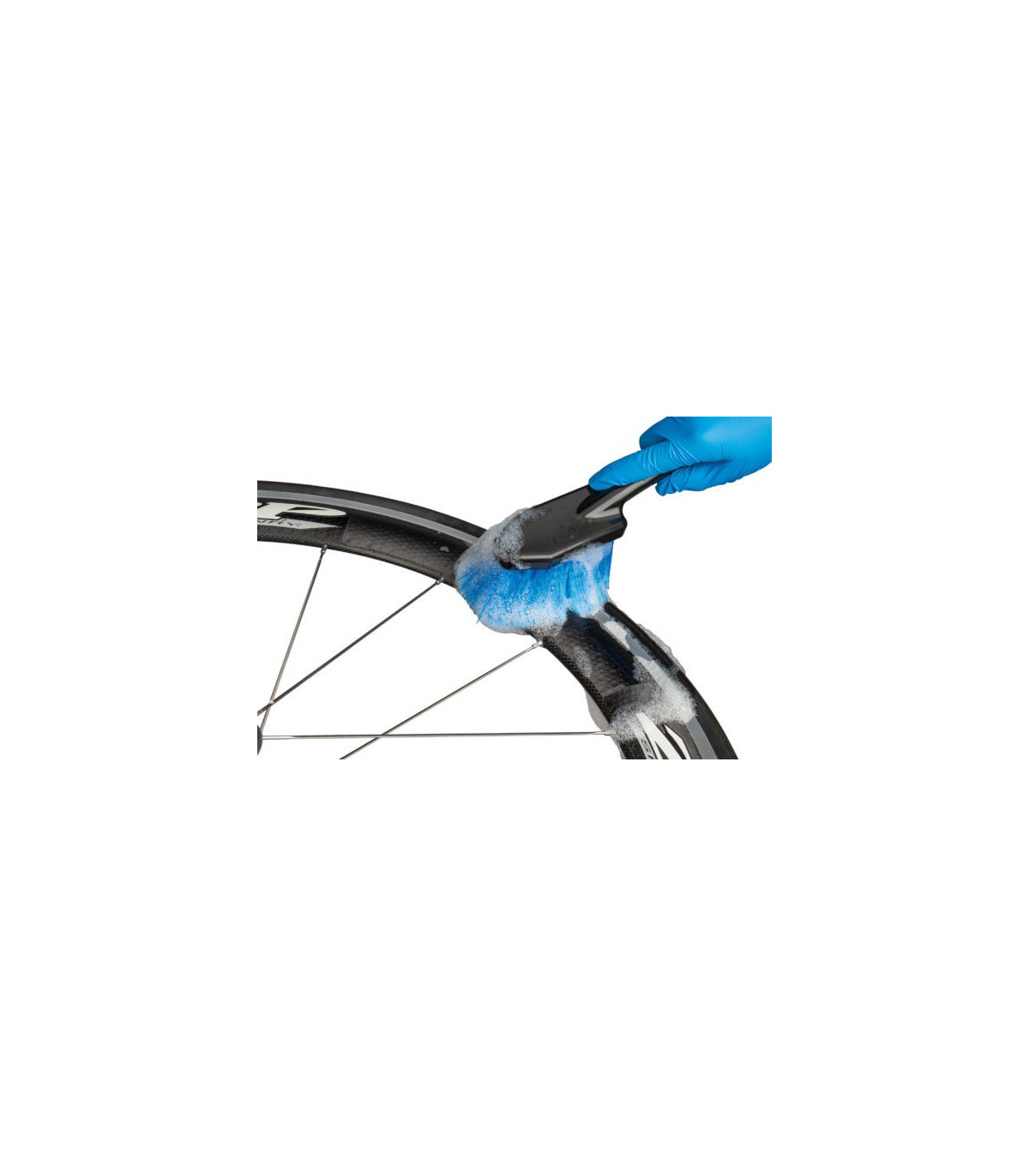 Zestaw szczotek do czyszczenia. W skład zestawu wchodzą cztery szczotki przeznaczone do czyszczenia ramy, napędu, opon i drobnych części.