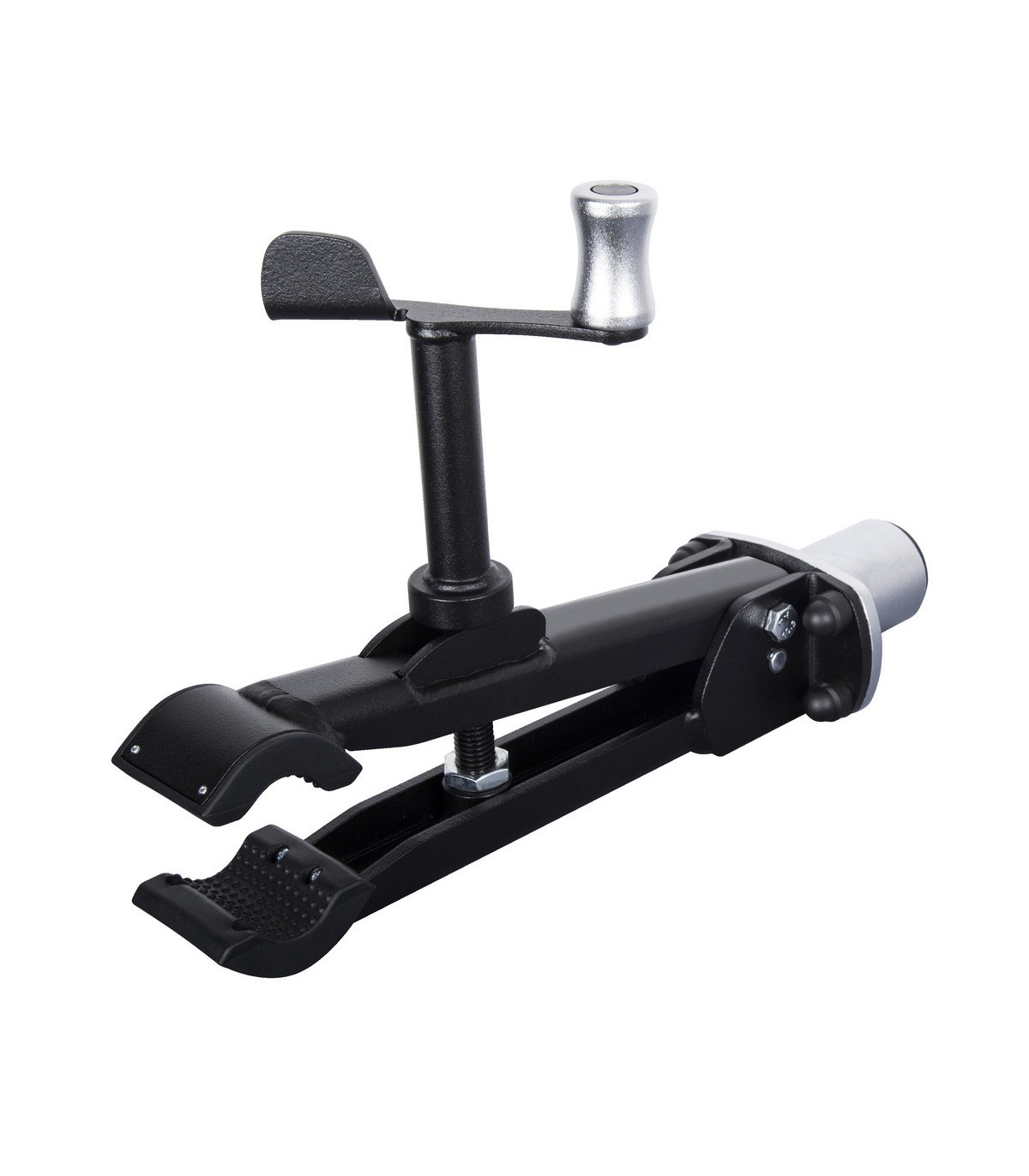 Konstrukcja ramy zaciskowej umożliwia otwieranie i zamykanie szczęk równolegle względem siebie, jednocześnie umożliwiając zamocowanie roweru w miejscu.