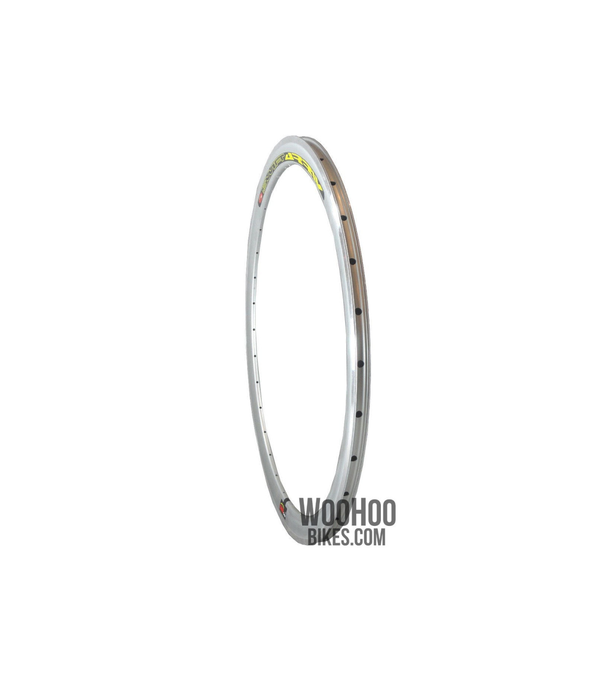 - Wewnętrzna średnica obręczy: 549mm, przybliżona grubość ścianki obręczy: 3mm, co daje zsumowaną średnicę wewnętrzną wraz z dwiema ściankami 549mm + 2x3mm = 555mm.
