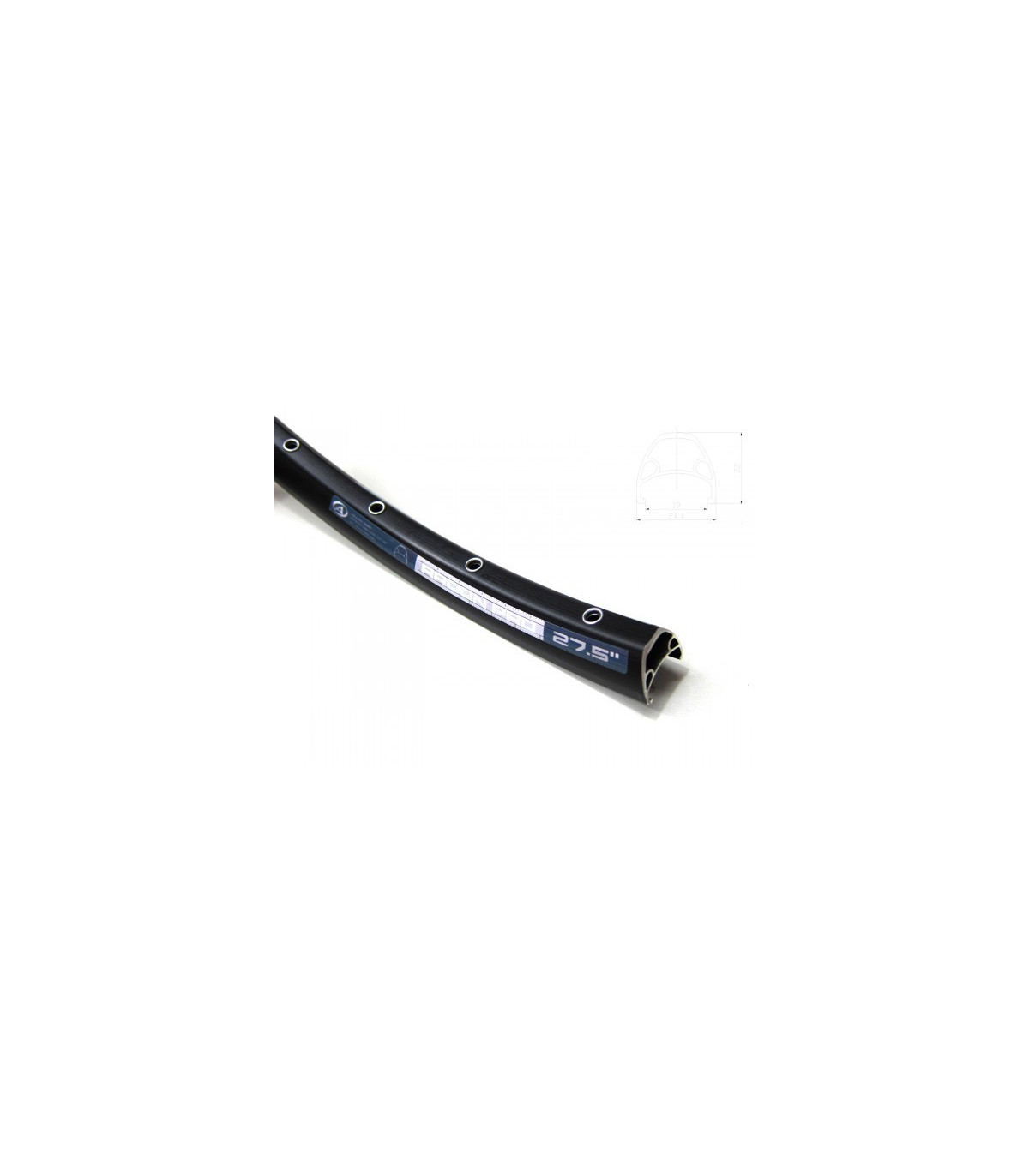 Obręcz do kół 27,5”, wykonana z obrabianego termicznie stopu aluminium 6061H-T6. Nitowana. Dwuścienna. Kapslowana. 3 komory. Do stosowania wyłącznie z hamulcami tarczowymi. Otwór na wentyl FV.