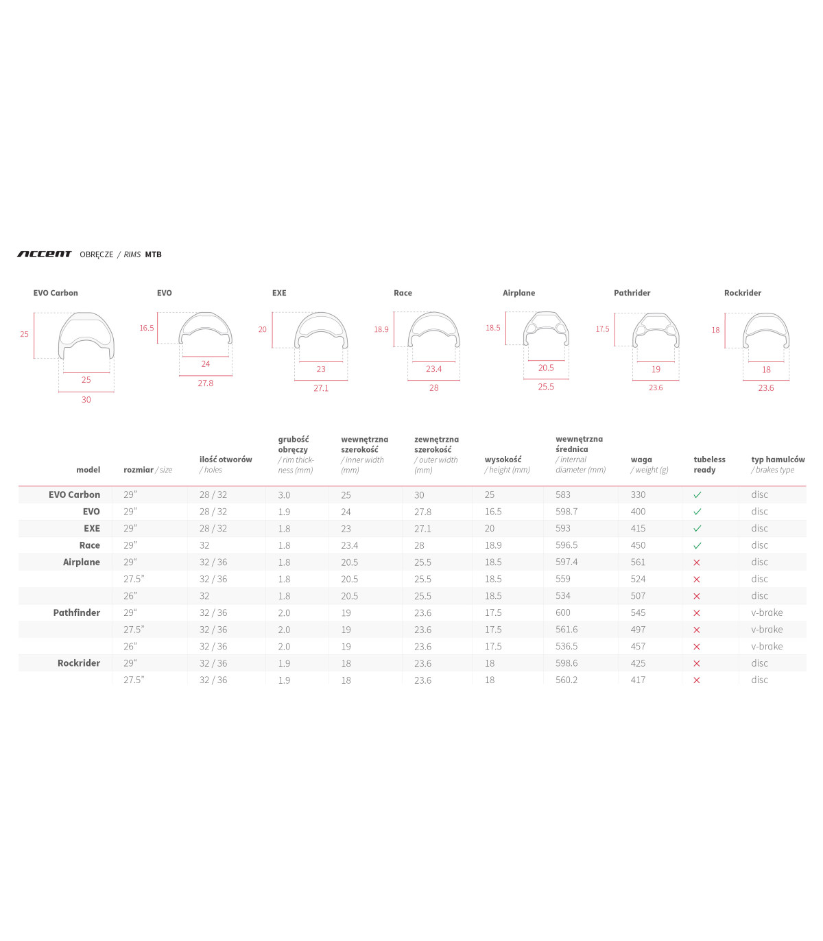 Accent Airplane 26" 32H to obręcz, która pozwala złożyć koło idealne do klasycznych MTB 26”, wciąż cenionych za zwinność i szybkość reakcji. Dzięki sztywnej konstrukcji i kapslowanym otworom świetnie radzi sobie zarówno w szybkich zakrętach, jak i na technicznych odcinkach. To obręcz dla rowerzystów, którzy chcą przywrócić życie swojemu 26-calowemu zestawowi lub zbudować koło na solidnym, sprawdzonym fundamencie.