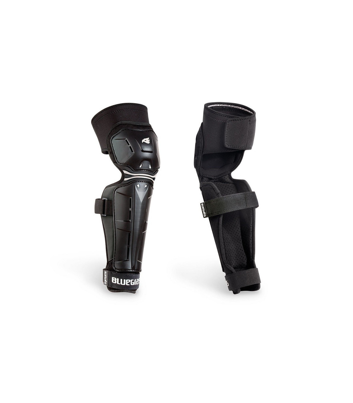 Ochraniacze w wersji na kolana/golenie. Zapewniają pełną ochronę dla kolan oraz piszczeli. W górnej i dolnej części wkładki silikonowe. Pianka o wysokiej gęstości zapewnia dużą swobodę ruchów. Twarda skorupa zewnętrzna wykonana z tworzywa sztucznego. Konstrukcja oraz użyte materiały zapewniają właściwą cyrkulację powietrza. Zapinane na 3 paski z rzepem umożliwiające dokładne dopasowanie.