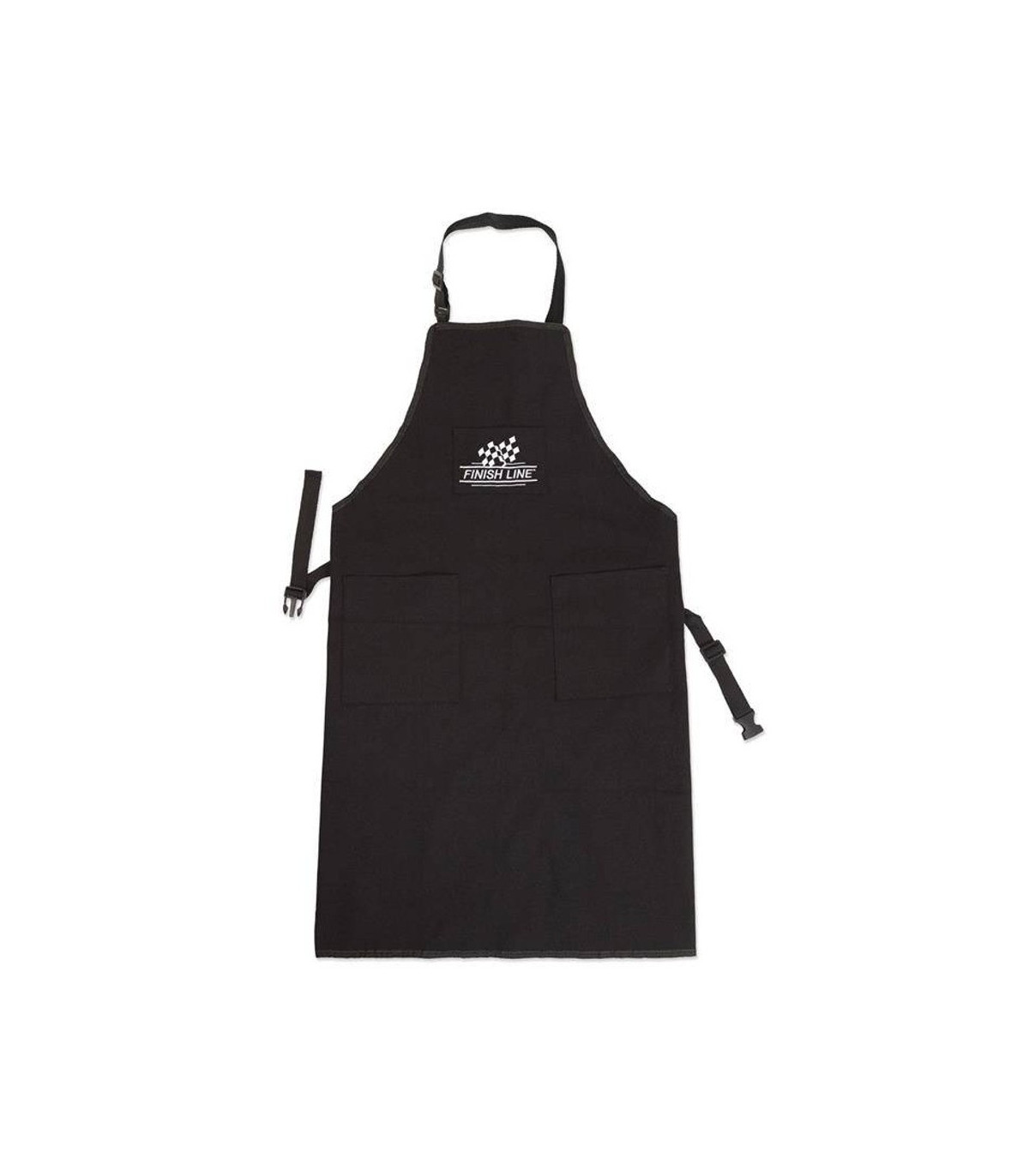 Fartuch serwisowy Finish Line Shop Apron wykonany z odpornego materiału z logo Finish Line na przodzie. Posiada kilka kieszonek do przechowywania drobnych elementów, takich jak śruby czy nakrętki. Zakładany przez głowę i zapinany z tyłu na klamrę.
