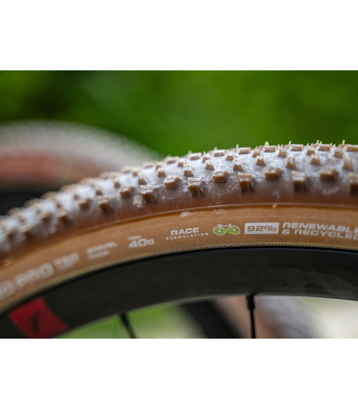 Zastosowana Race Formulation G2.0 skupia się na prędkości, przyczepności i trwałości. Naturalna guma z certyfikatem FairRubber® zwiększa odporność na uszkodzenia, olej sojowy poprawia elastyczność i żywotność mieszanki, a krzemionka pozyskiwana z popiołu łuski ryżowej wspiera efektywne toczenie i stabilność na niejednorodnym podłożu.