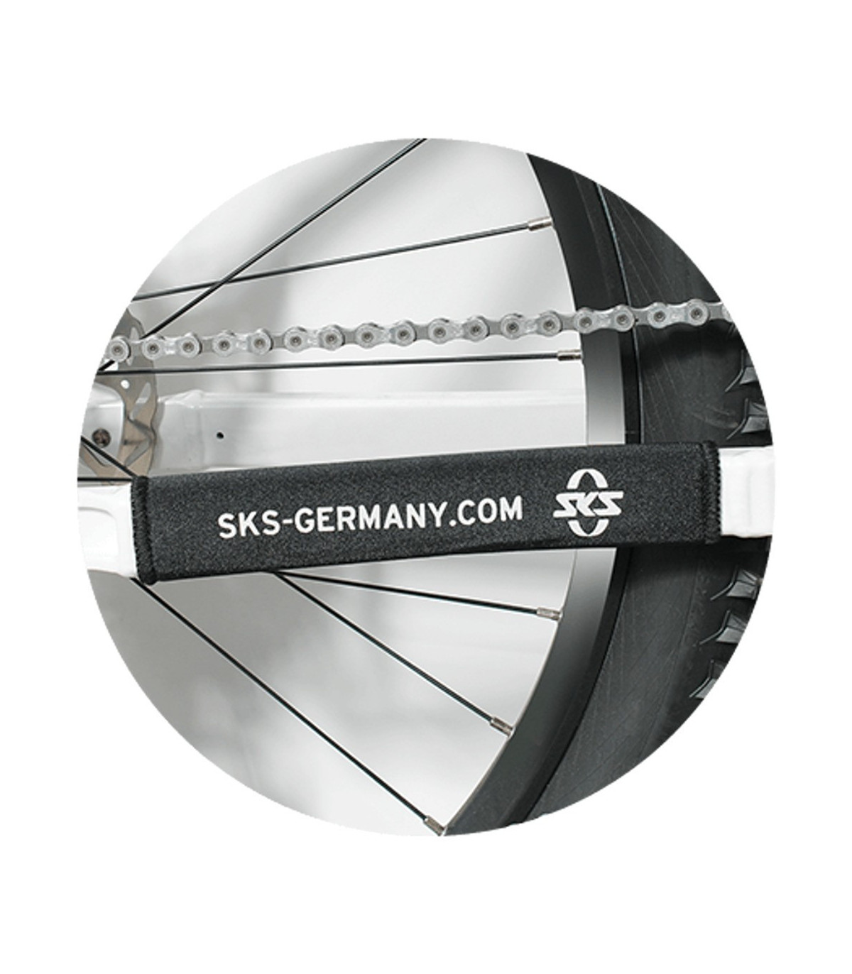 Osłona łańcucha marki SKS zabezpieczająca przed zadrapaniami i różnymi uszkodzeniami. Osłona została wykonana z grubego, elastycznego neoprenu i jest bardzo łatwo mocowana za pomocą długiego zapięcia na rzep.