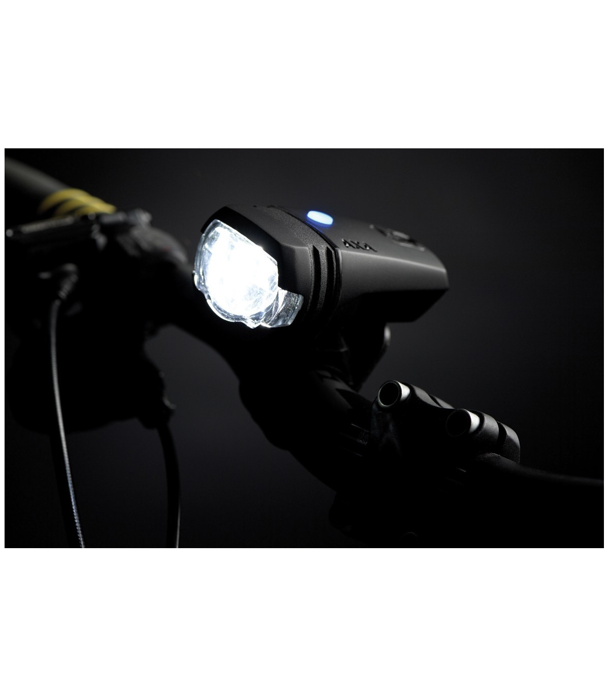 - Przednia lampa wyposażona w jedną mocną diodę LED o mocy 15 luxów.