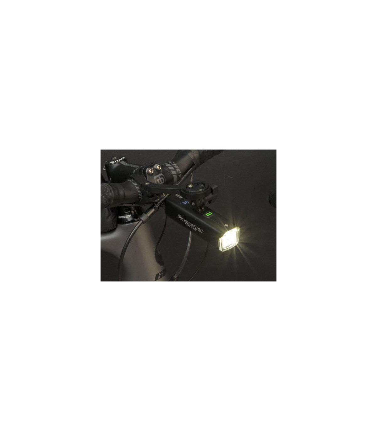 Wysokiej jakości lampka rowerowa w obudowie ze stopu aluminium o mocy 1000 lm z wbudowanym powerbankiem oraz wyświetlaczem LCD.
