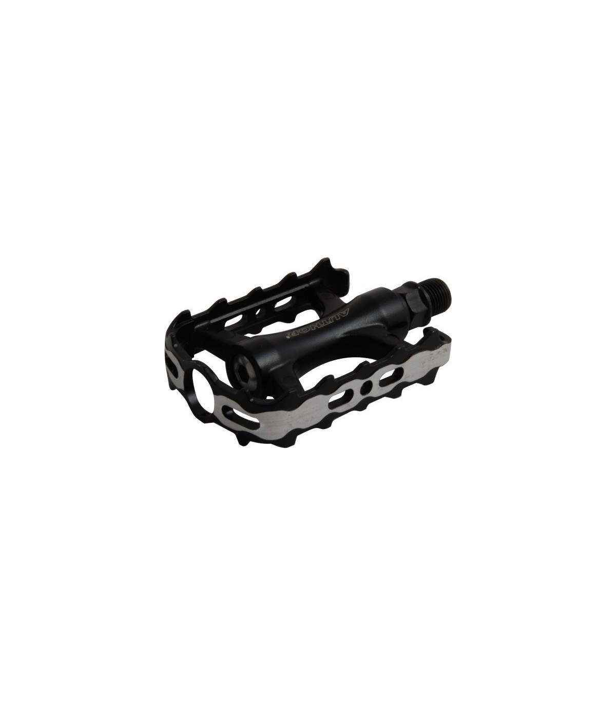 Lekkie pedały aluminiowe. Korpus i osłona korpusu wykonane ze stopu aluminium 6061-T6. Oś wykonana ze stali Cr-Mo. Uszczelniane łożyska maszynowe.