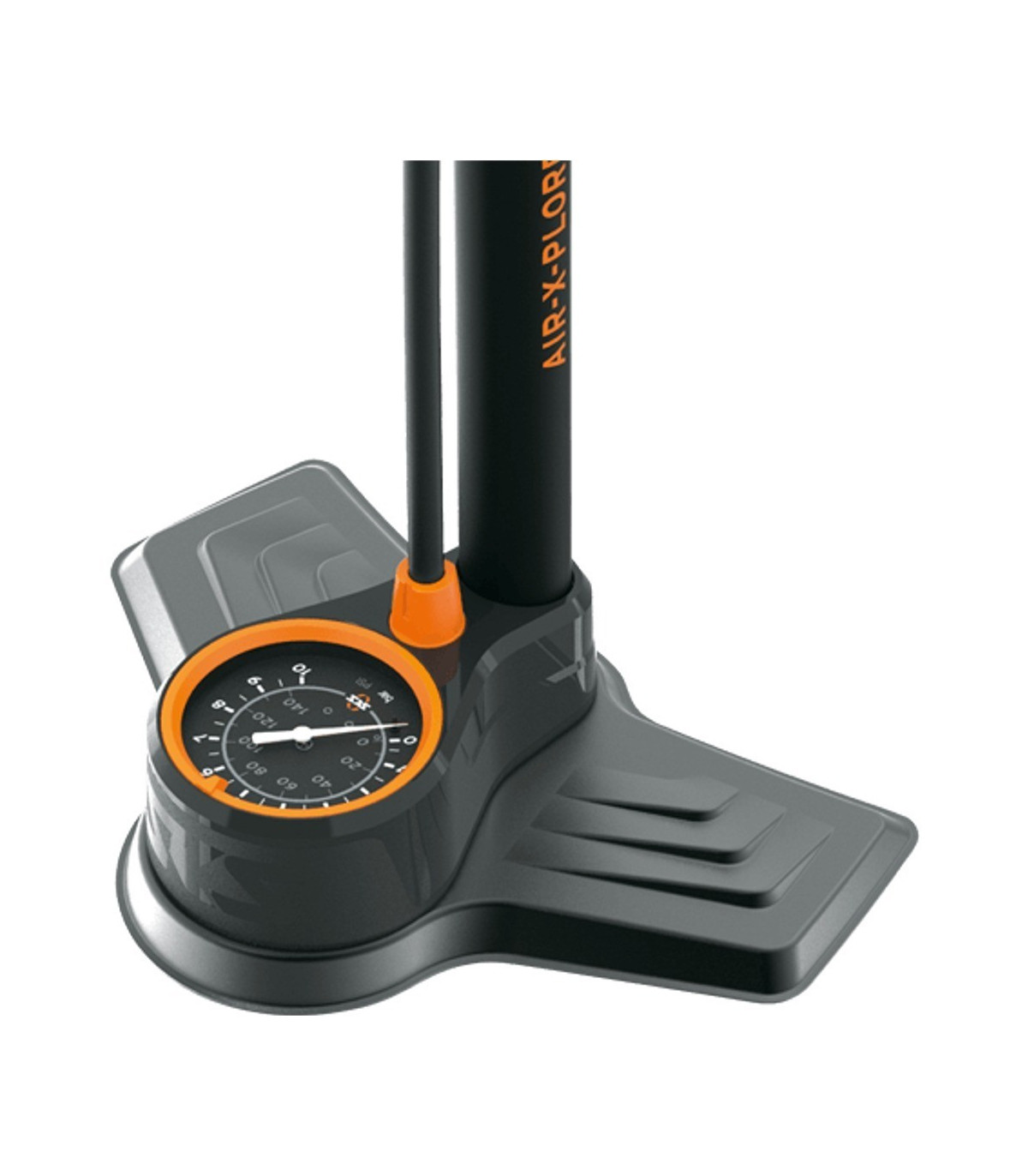 ompka podłogowa Air-X-Plorer Digi 10.0 produkowana przez renomowaną niemiecką firmę SKS. Solidna metalowa podstawa zapewnia pompce odpowiednią stabilność. Pompka posiada miękki uchwyt i długi wąż zapewniający większą wygodę podczas pompowania. Air-X-Plorer Digi 10.0 została także wyposażona w wysokiej jakości manometr cyfrowy, który gwarantuje dokładność pomiaru ciśnienia. Zastosowana końcówka "MV Easy" Multi Valve Head sprawia, że pompkę można używać ze wszystkimi typami wentyli - AV, SV oraz DV. Pompka oferuje maksymalne ciśnienie w granicach 10 bar (144 PSI).