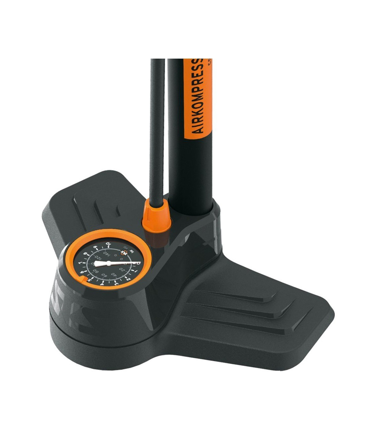 Pompka podłogowa Airkompressor Compact 10.0 produkowana przez renomowaną niemiecką firmę SKS. Solidna podstawa wykonana z tworzywa sztucznego zapewnia pompce odpowiednią stabilność, a wykonany z tego samego materiału uchwyt wygodnie leży w dłoni. Pompkę wyposażono w precyzyjny manometr, który znacznie ułatwia odczyty ciśnienia. Zastosowana końcówka "MV Easy" Multi Valve Head sprawia, że pompkę można używać ze wszystkimi typami wentyli - AV, SV oraz DV. Pompka oferuje maksymalne ciśnienie w granicach 10 bar (144 PSI).