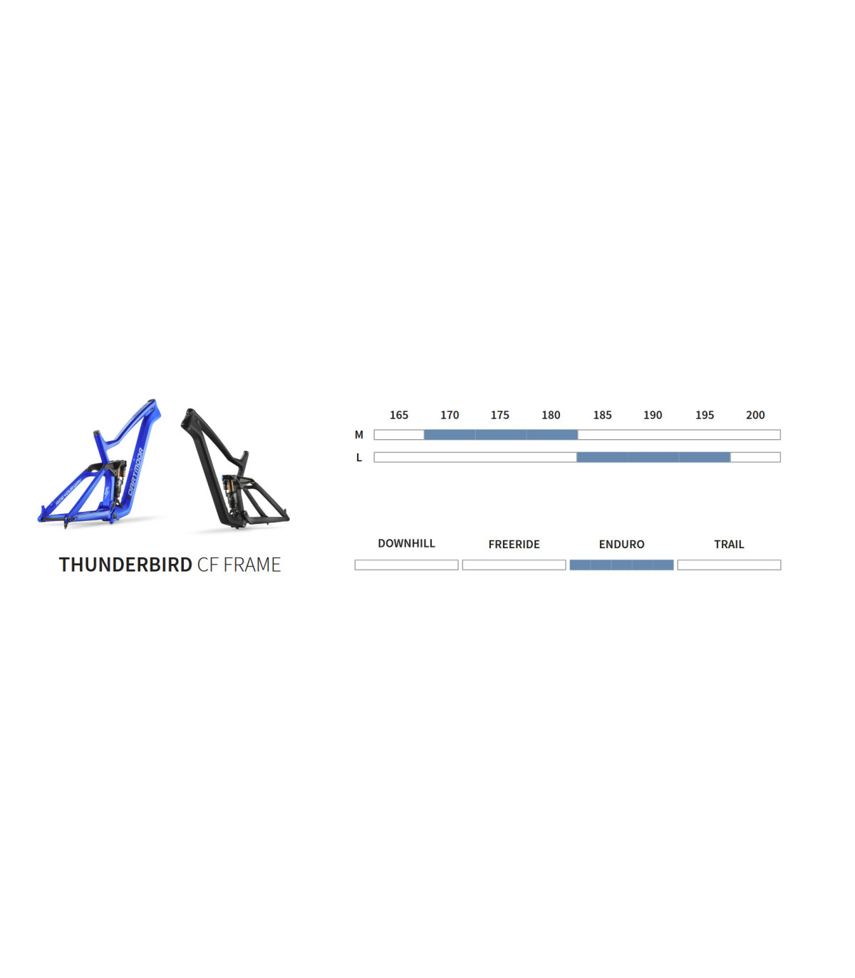 Karbonowa rama Dartmoor Thunderbird CF to sprzęt stworzony z myślą o enduro w najtwardszym wydaniu. Dynamiczna, lifestylowa konstrukcja o progresywnym skoku 160 mm zaprasza do jazdy po trasach, które innym każą zwolnić.