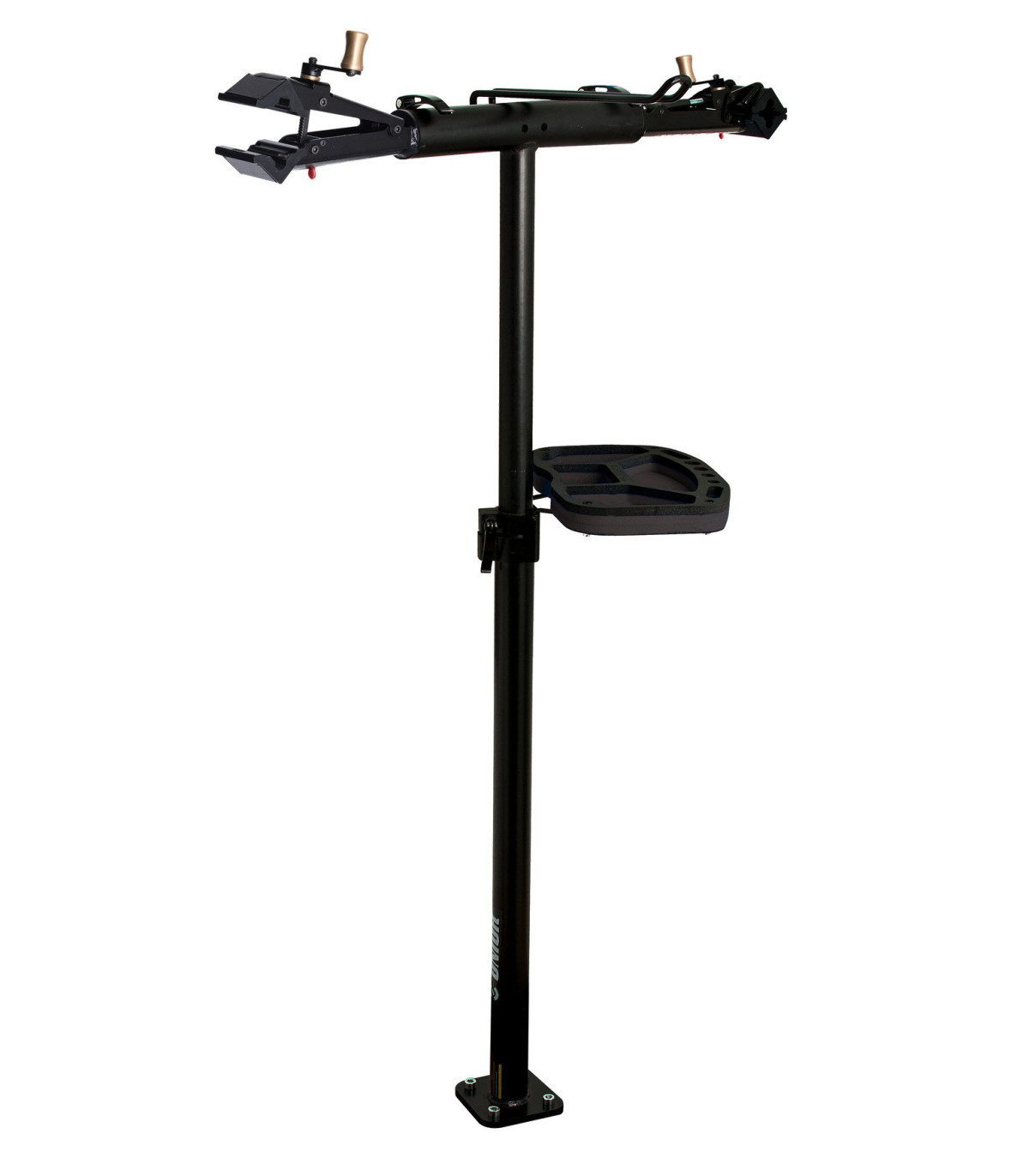 Stojak umożliwia jednoczesną pracę dwóm mechanikom przy dwóch rowerach.