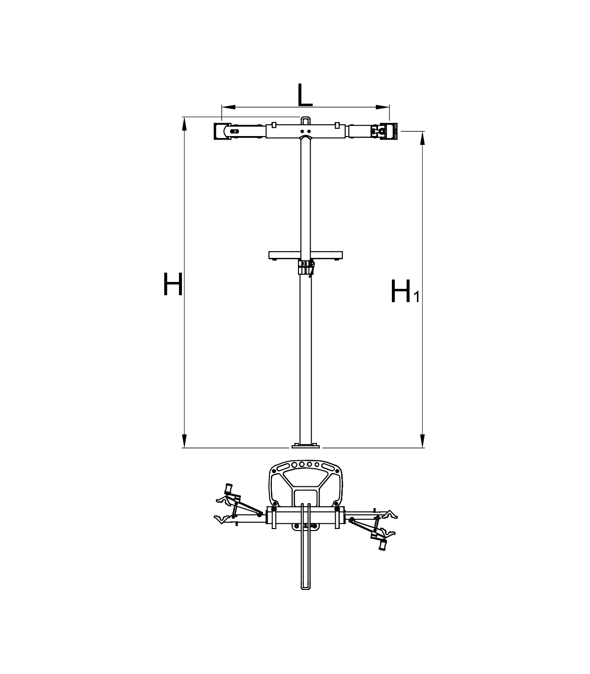 Stojak posiada regulowaną wysokość od 95 do 157 cm.