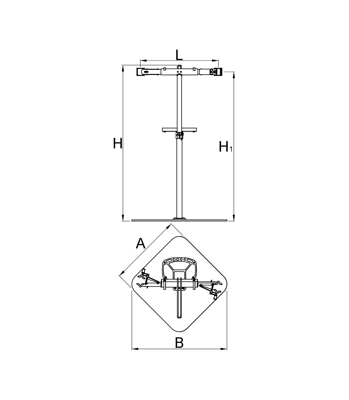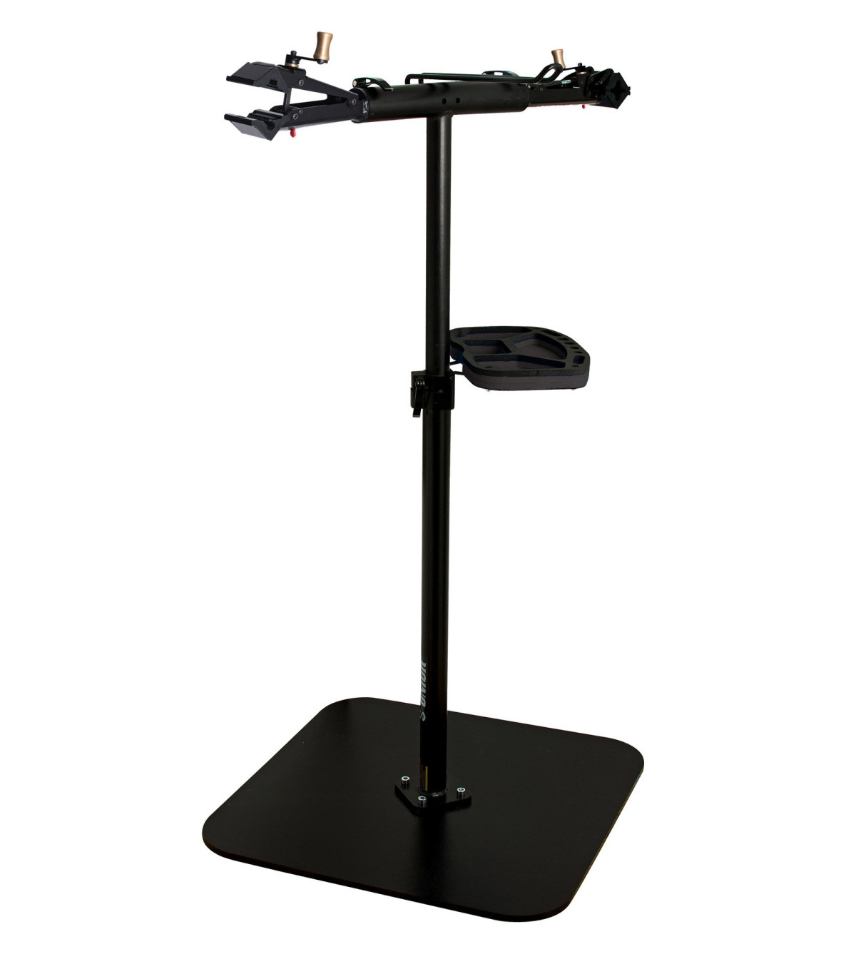 Stojak serwisowy do roweru z podstawą płytową i dwoma szczękami przeznaczony dla serwisów i bardziej wymagających użytkowników.