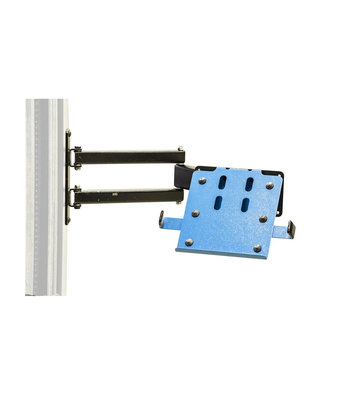 Składany uchwyt na tablet mocuje się do kolumny elektrycznej stojaka naprawczego Unior i zapewnia optymalne umieszczenie tabletu.